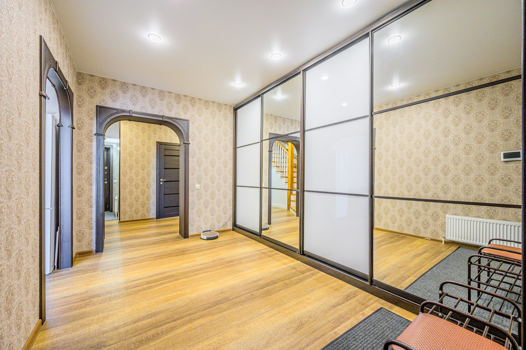 В доме 4 года назад сделан качественный ремонт, на 1 этаже и в санузле 2-го этажа теплый пол из кварцвинила, в остальном пространстве - ламинат.