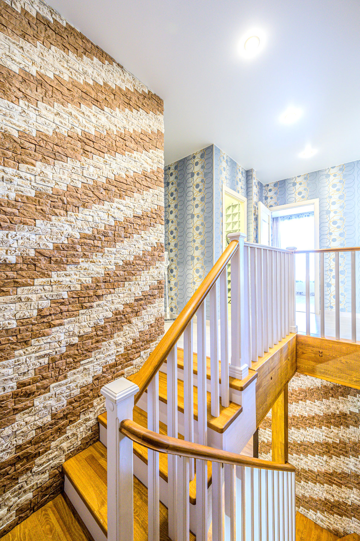 На 2 этаж ведет капитальная деревянная лестница на металлическом каркасе, там расположились 3 спальни (хозяйская, детская и гостевая), кабинет, санузел с душевой кабиной.