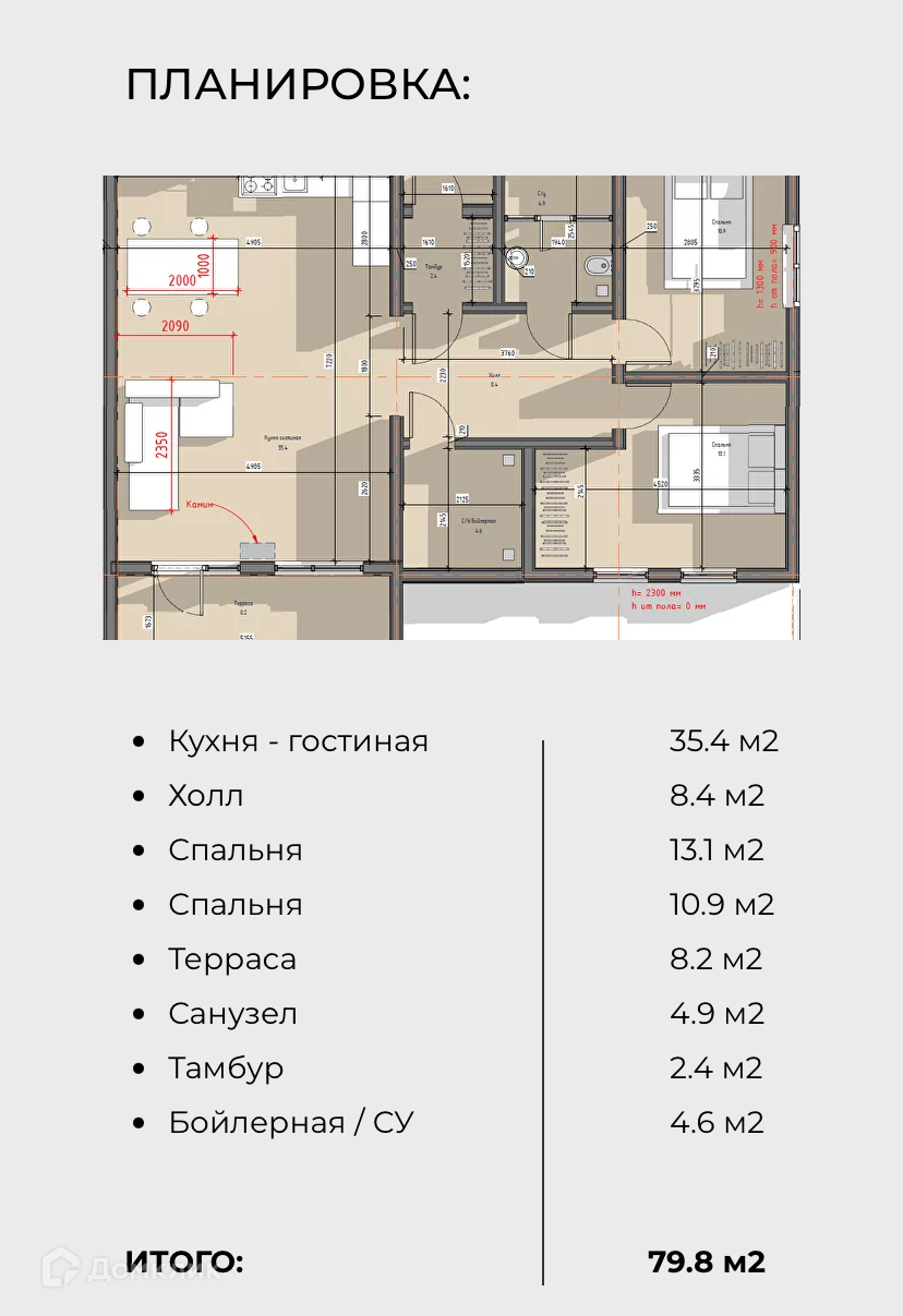 Общая площадь 80 м2