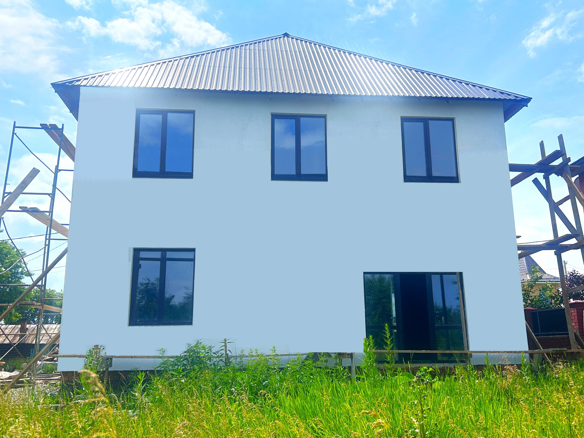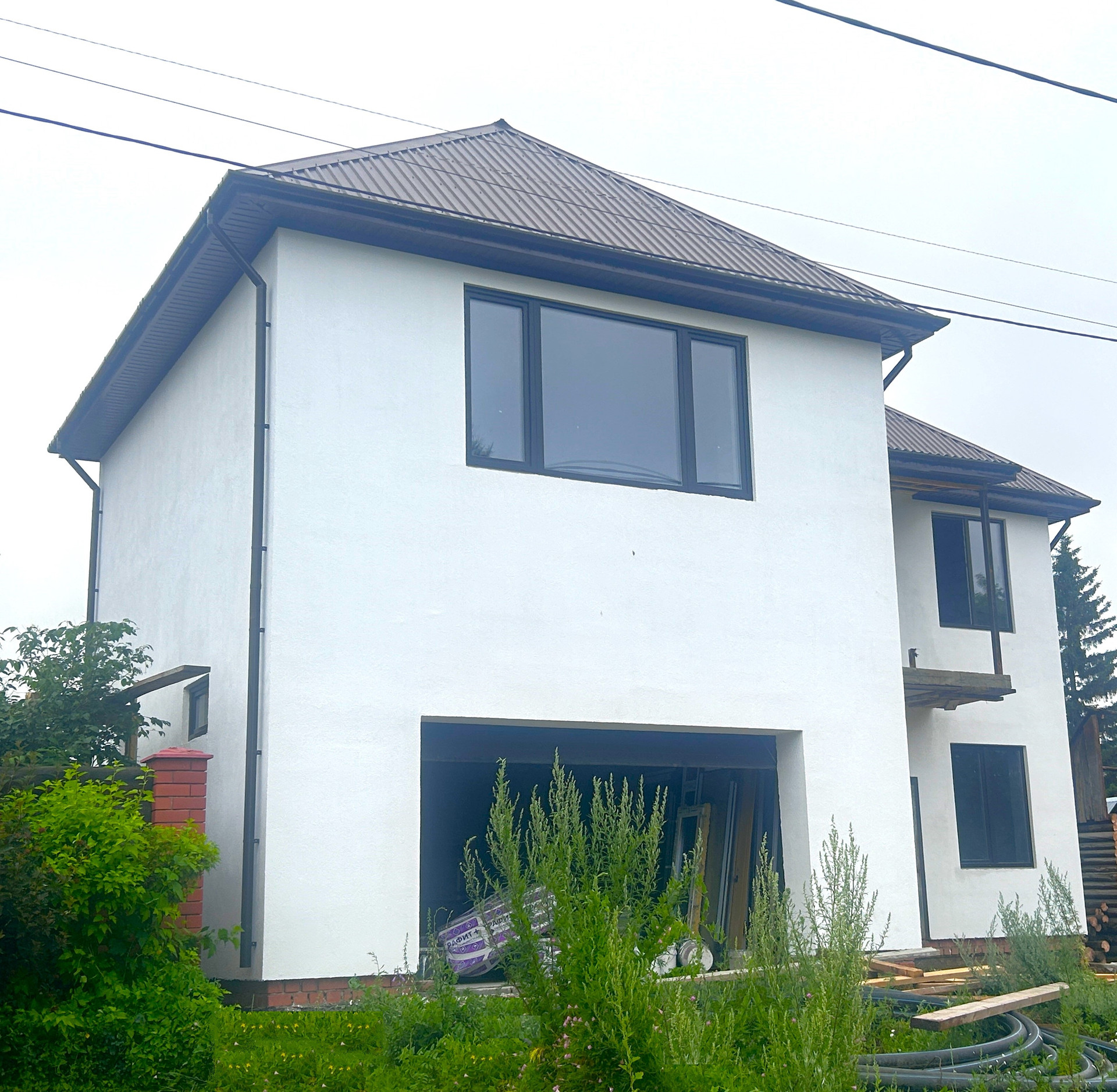 Стеклопакеты на окнах 2-х камерные (3 стекла) марки «КВЕ», входная дверь в дом стальная, в гараж ворота установлены с подъемной системе фирмы «АЛЮТЕХ» с возможностью автоматического открывания