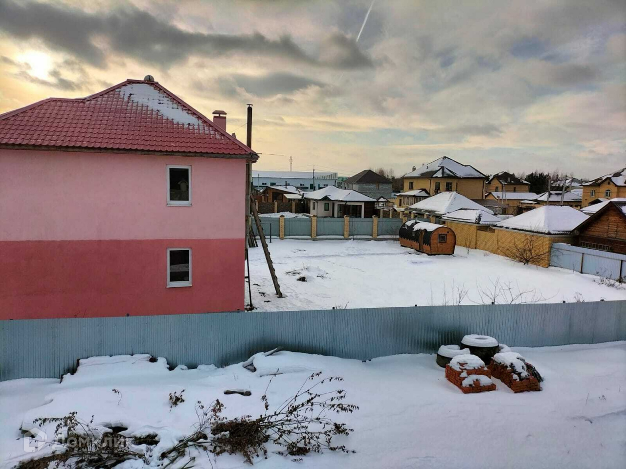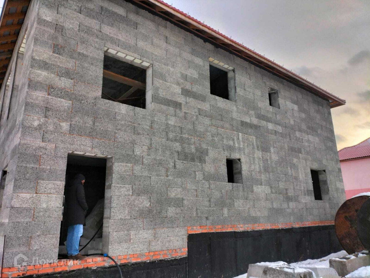 Земельный участок 1198 м2. Земли населенных пунктов. ЛПХ. Стоит недостроенный дом - стены бризолит, фундамент ленточный высота 1 метр , перекрытия монолит. Площадь 280м2. Есть газ, свет и скважина 32 м.