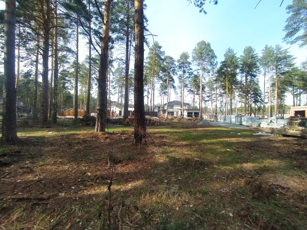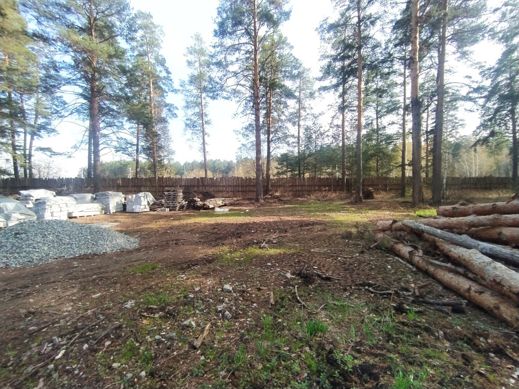 Участок пустой, подготовлено место под посадку дома, сделан эскизный проект и посадка на участке, проведена гидрогеология. Участок с лесом, все сети оплачены (электричество, газ до границы, канализация центральная). Все сети в поселке сделаны подземным способом.