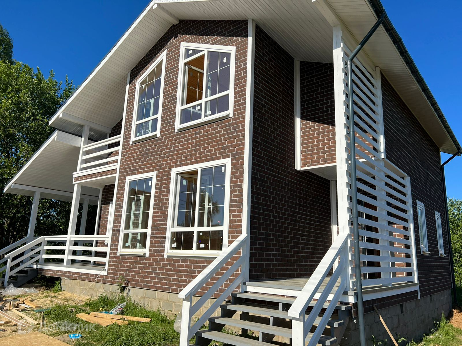 Дом: площадью 120 кв.м, двухэтажный, построен из качественных материалов по каркасно-щитовой технологии с зимним утеплением, кровля - металлочерепица, внешняя отделка - плитка хауберк, внутрення отделка - имитация бруса, сухая половая доска, удобная деревянная лестница, энергосберегающие окна, металлическая входная дверь, межкомнатные двери - экошпон