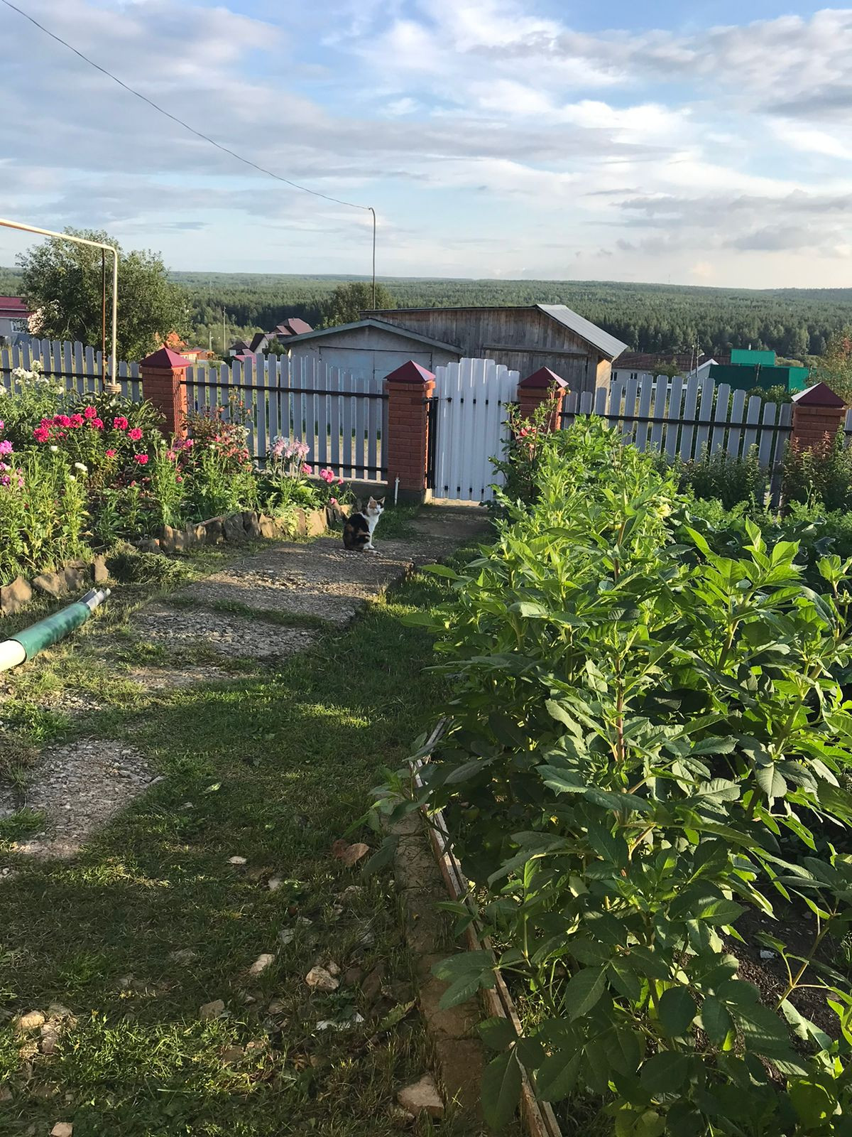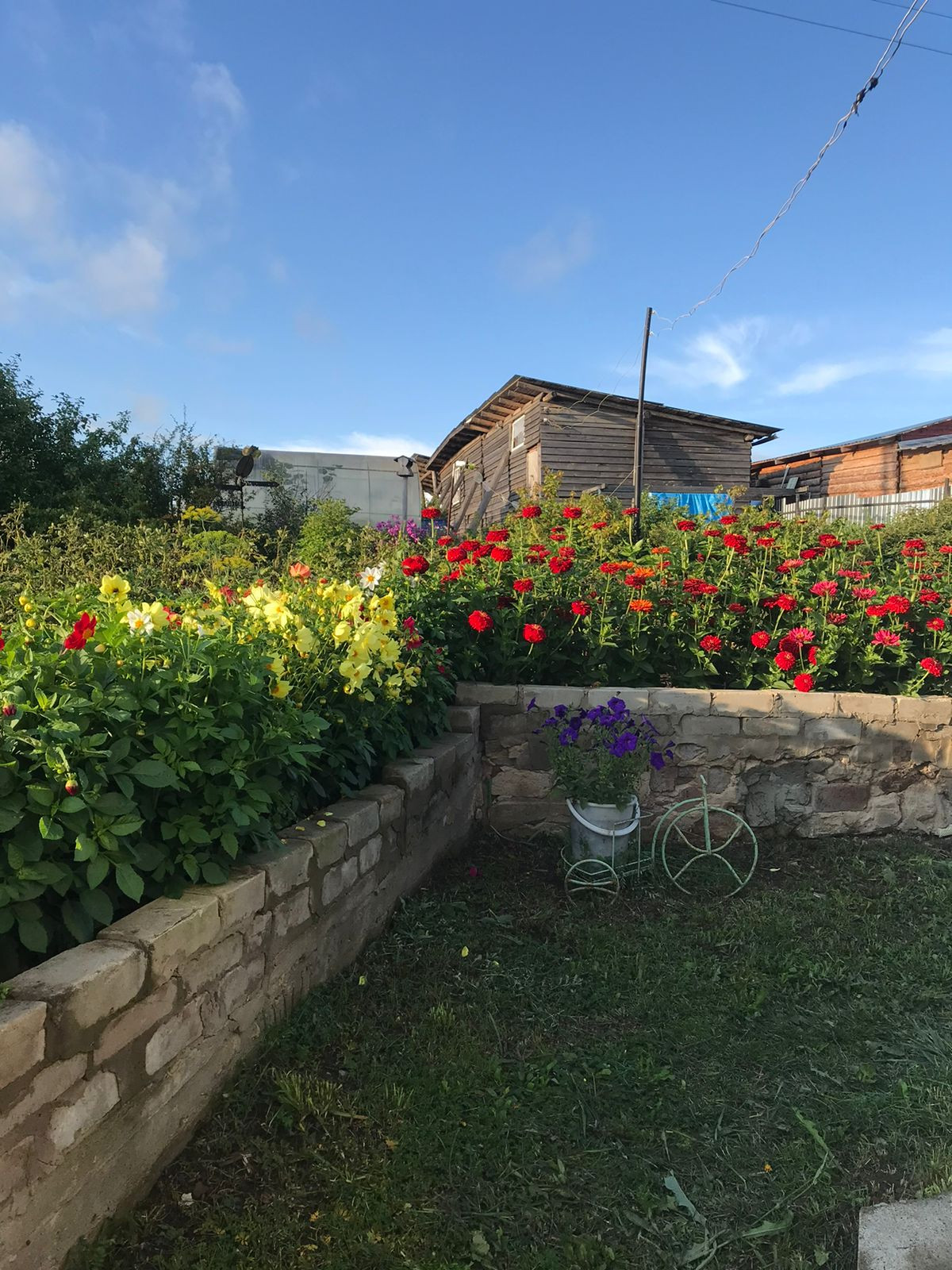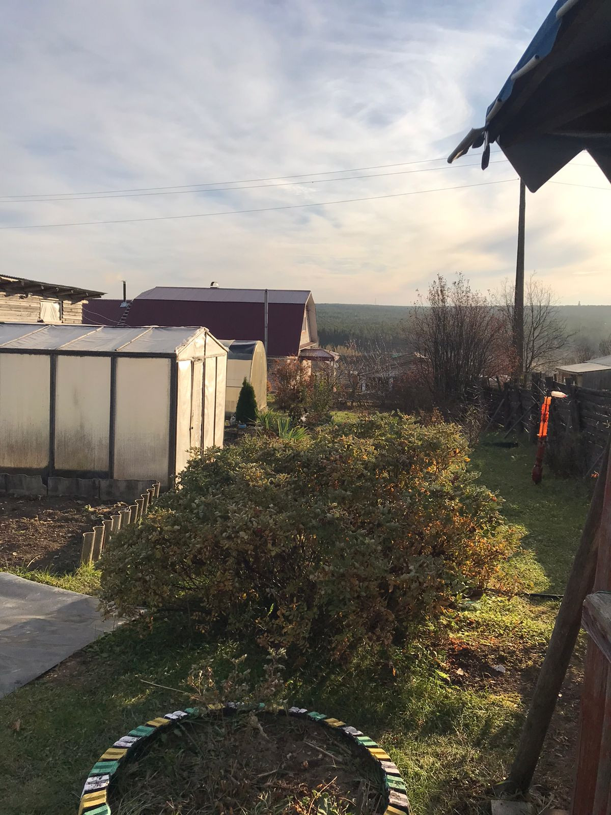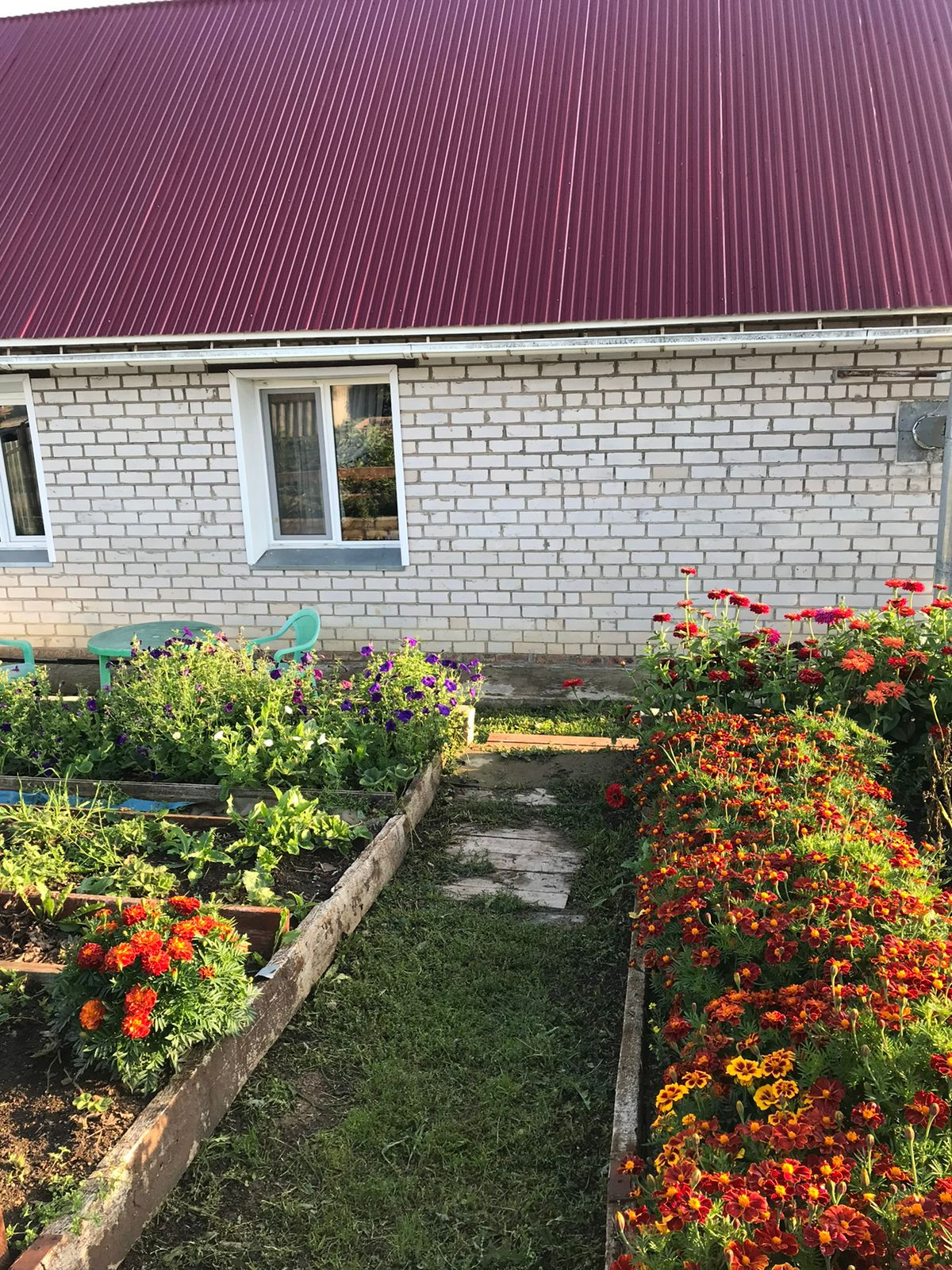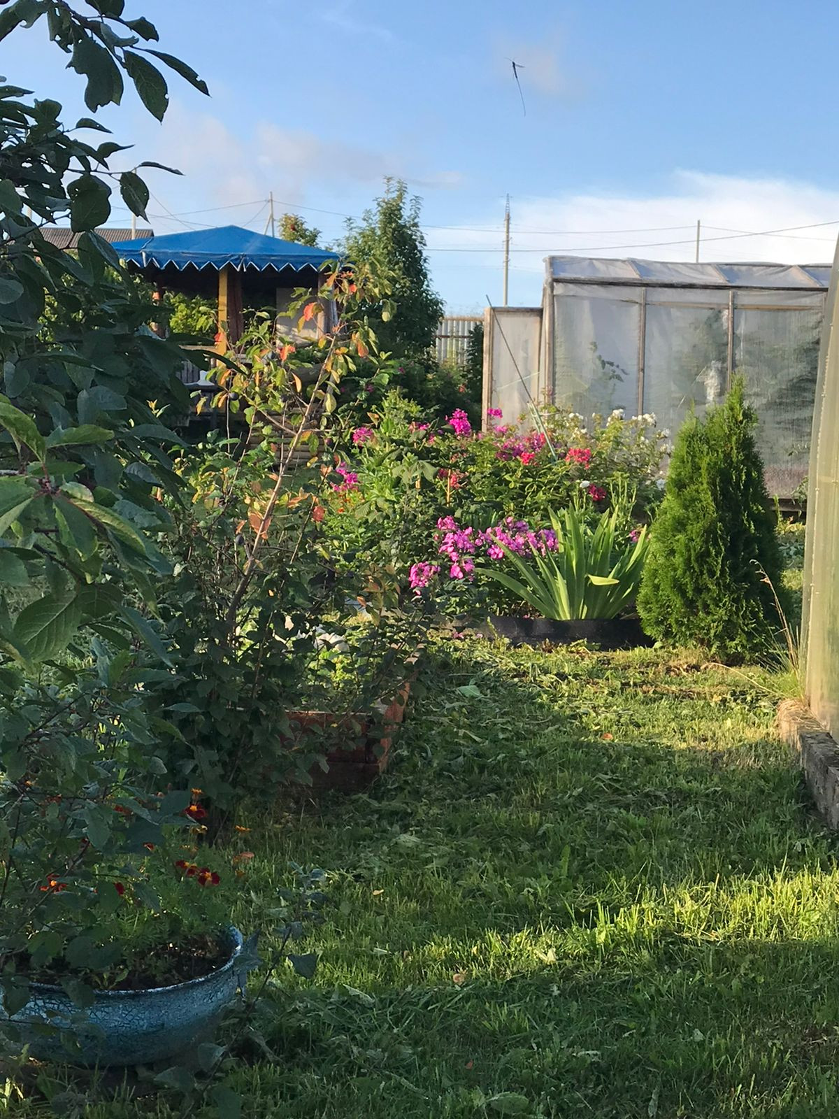 Сформированы аккуратные грядки, палисадник (розы, пионы и др.), есть 2 теплицы, множество плодоносных деревьев и кустарников.