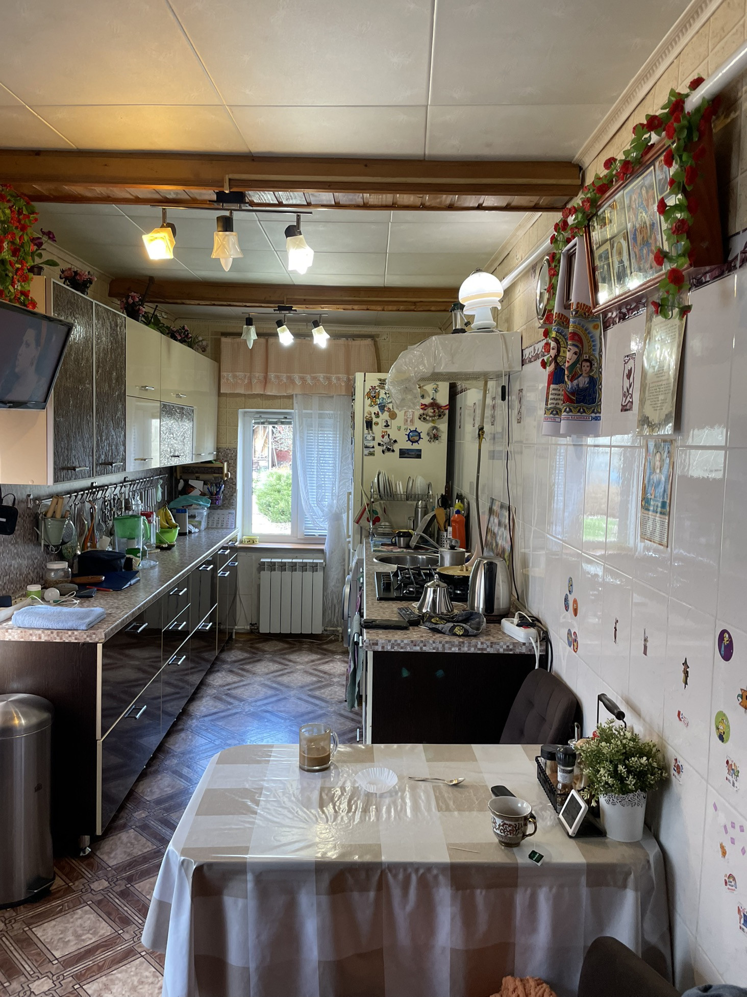 Дом о/п 78,3 кв.м, площадь с учётом вспомогательных помещений 93.1 кв.м. В доме три спальни , кухня 10 кв.м.  Отдельный санузел и душевая. Отопление двух контурный газовый котёл. Остаётся встроенная кухня и частично мебель в комнатах. Высокие потолки.