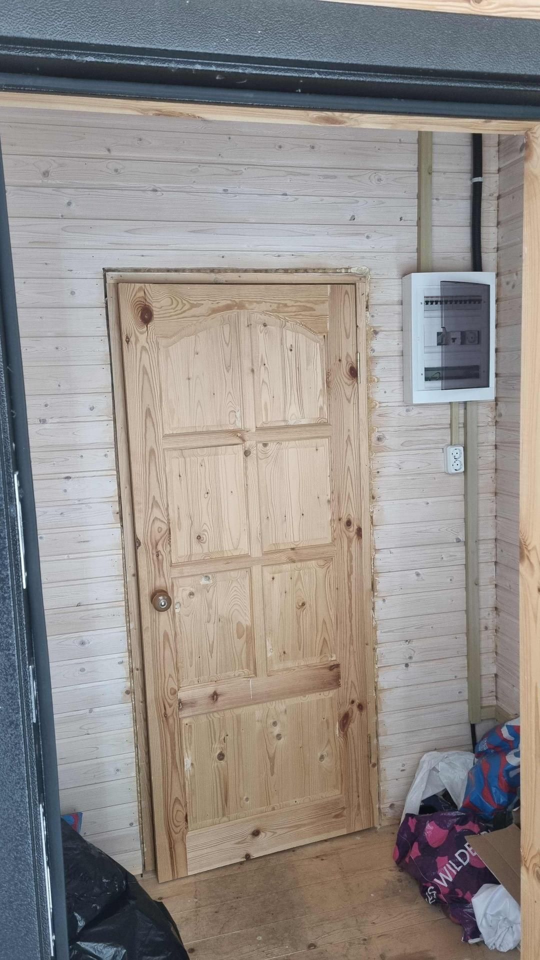 Электричество разведено по дому, розетки, выключатели есть.