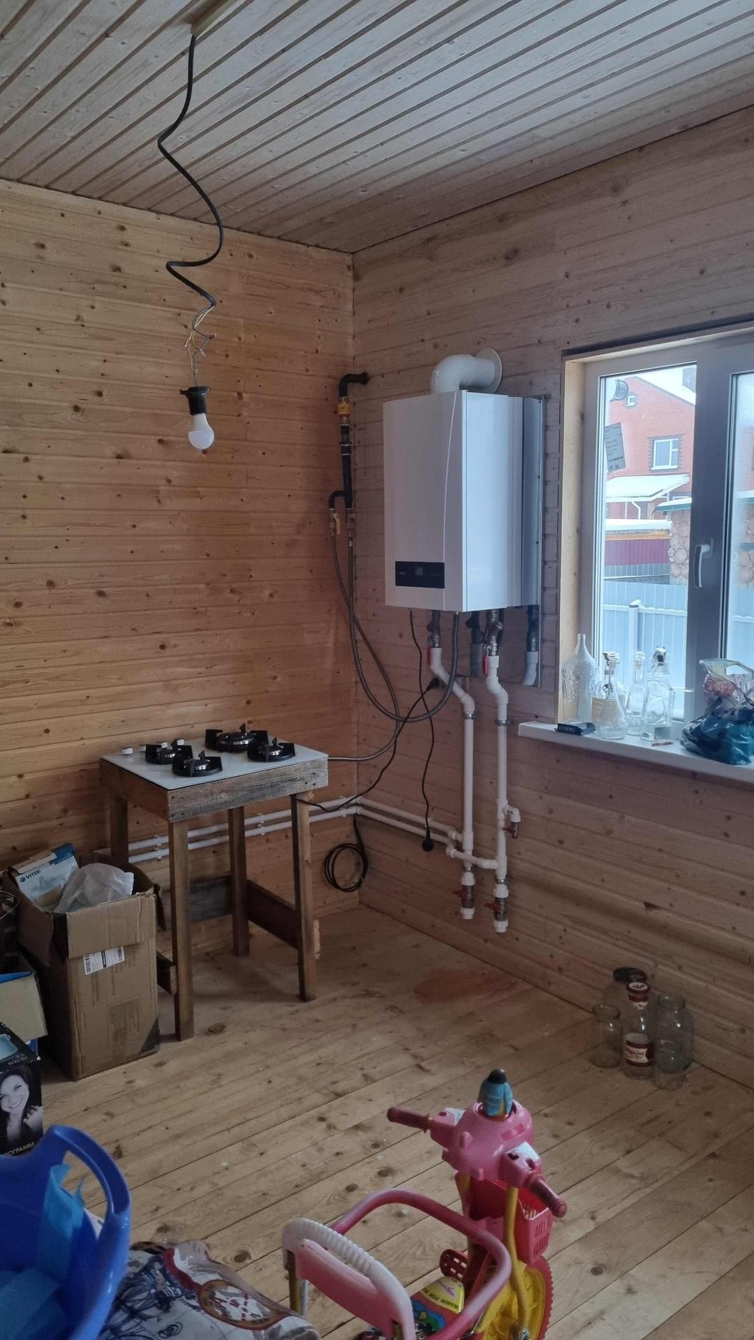 Газ заведен в дом и подключен к котлу и газовой плите, опломбирован и принят.