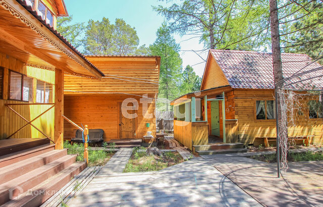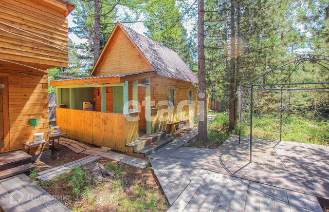 Во дворе находится гараж брусовой, летний дом и баня. Дом полностью готов к эксплуатации- заезжай и живи. К летнему домику и бане проведен летний водопровод. Площадь участка 6 соток, где растут сосны и кедры.