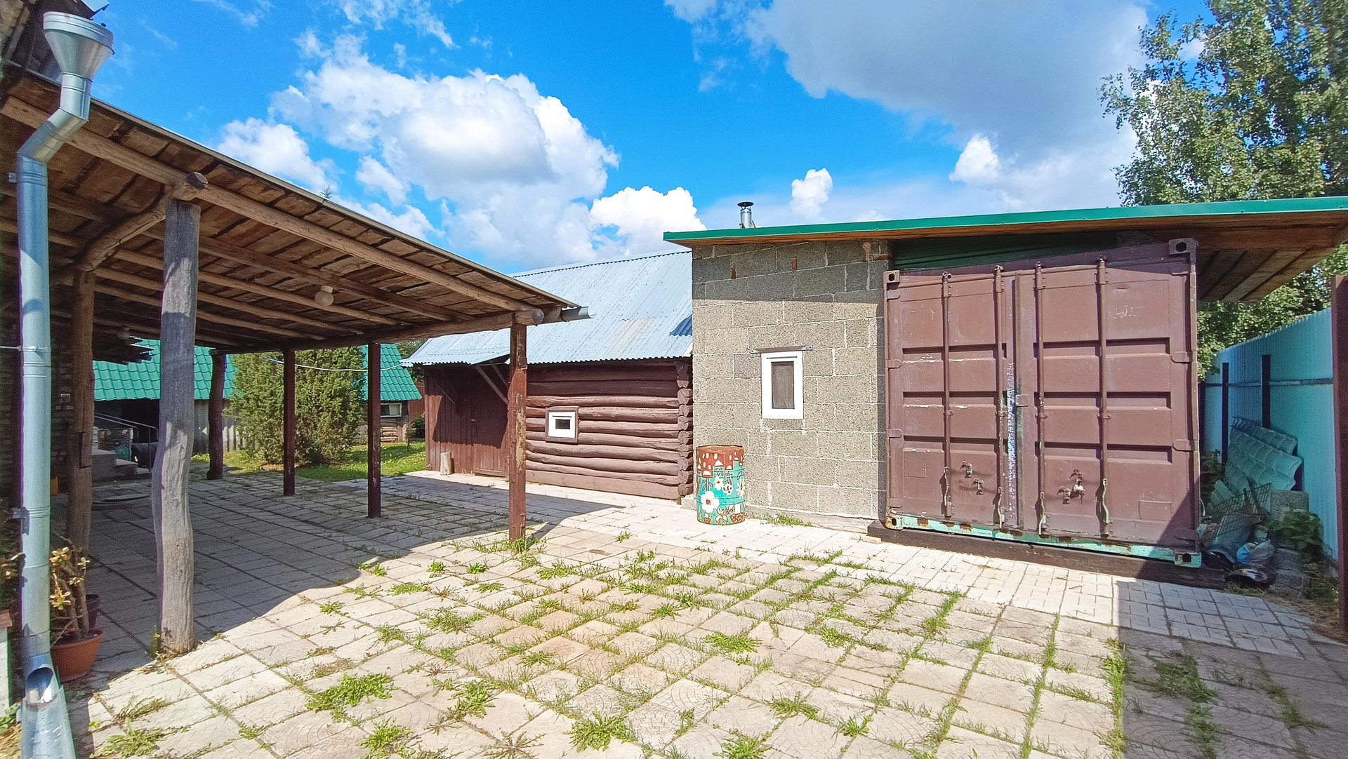 На участке навес для автомобиля, баня, хозяйственные постройки, погреб для хранения продуктов и консервов.
