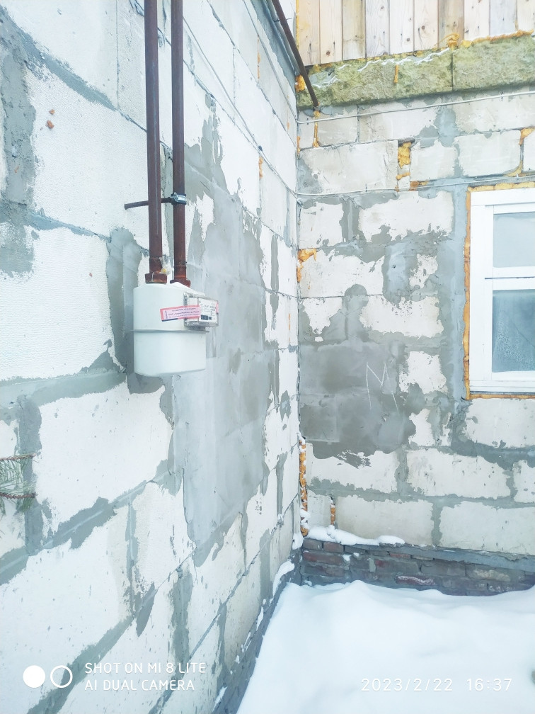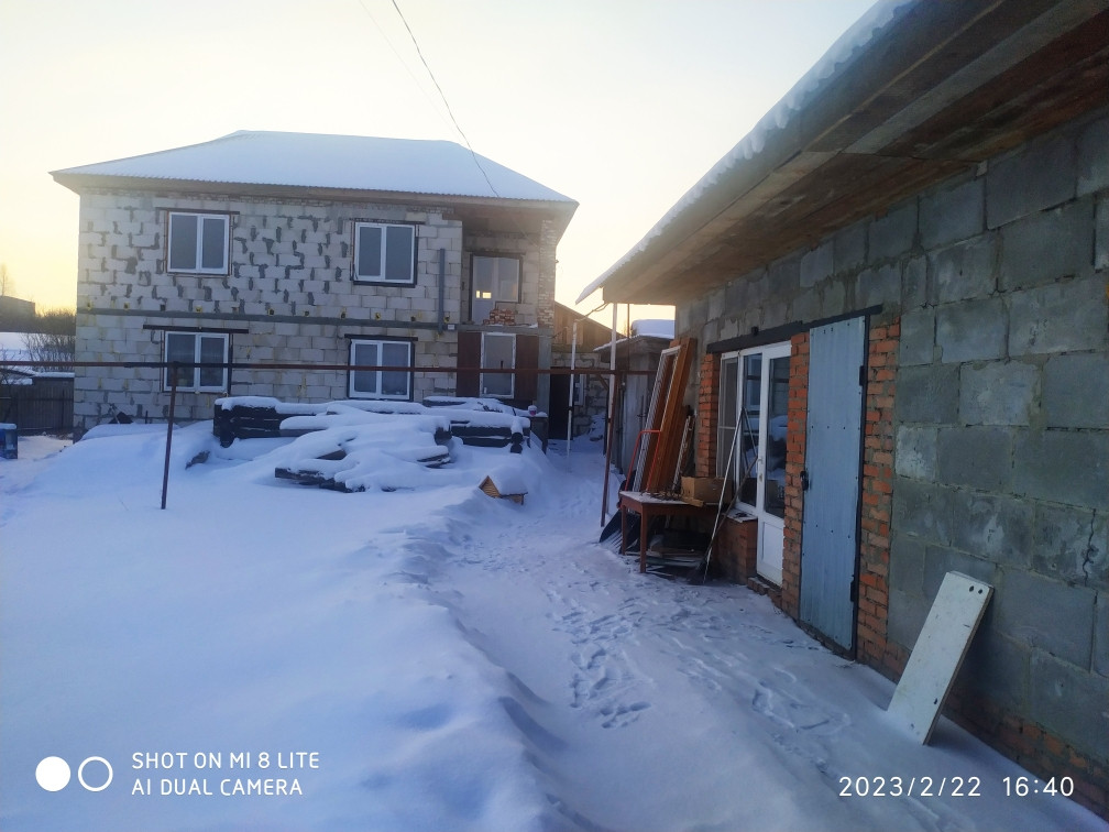 Фундамент ленточно наливной глубиной 1.70 м. Стены пеноблок, внутри оштукатурен, с улице в рабочем состоянии. Крыша профлист.