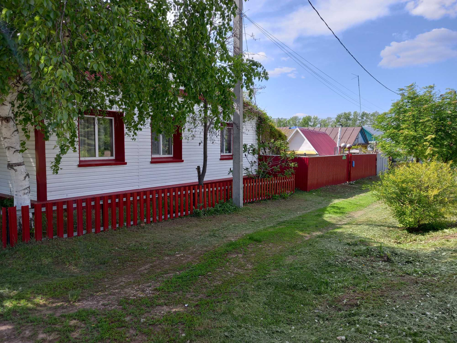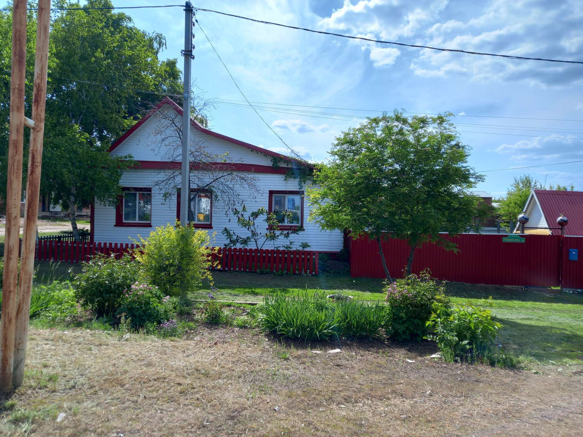 Дом находится в центре села, рядом вся инфраструктура, а именно: школа, библиотека, все виды магазинов, аптеки, детский сад. Больница в 15 минутах ходьбы. Дом деревянный обложен кирпичем и обшит сайдингом. Окна пластиковые, в доме есть туалет, вода из собственной скважины, так же есть гараж на одну машину и баня на газу.