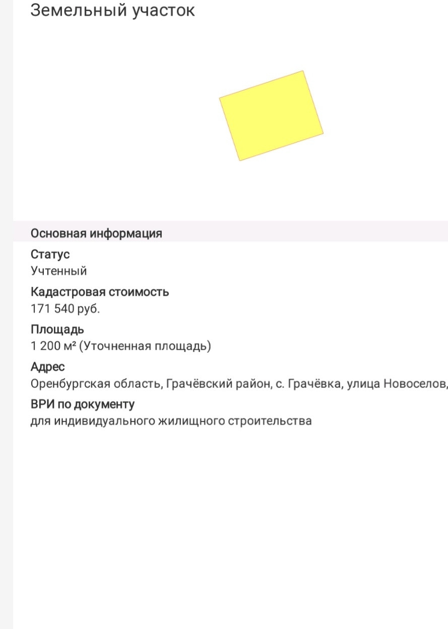 Участок под ИЖС, 1.2 сот. на продажу в селе Грачёвка, улица Новосёлов, 44