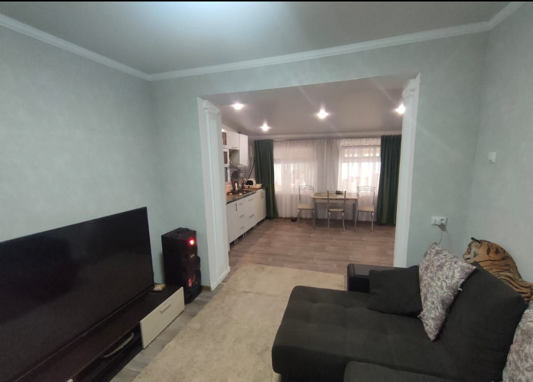 В доме 3 комнаты, просторная кухня, санузел совмещен, котельная комната, кладовка, имеется подвал. В кухне тёплый пол, проведены новые водяные трубы, газовая новая колонка, новая сплитсистема, триколор. Двор асфальтированный, новый капитальный  навес 50 кв, двор огорожен забором. Также имеются хозпостройки, огород. Мебель и технику частично оставляем.