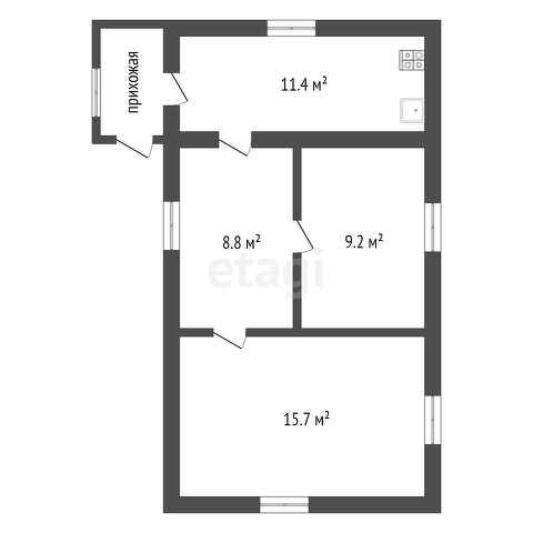 В доме 3 комнаты, кухня, туалет/ванная, прихожая.