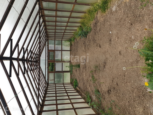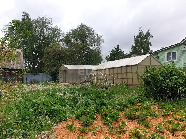 Участке, 15 соток, ровный, прямоугольный, огорожен забором из профлиста. На нем расположены 2 сарая, 2 теплицы, баня, летний душ, туалет. Растут плодовые деревья и кустарники.