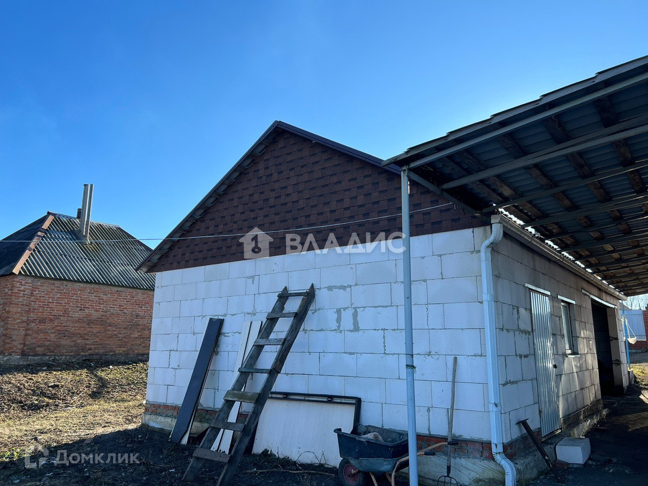 Дом выполнен из блока 40 см, отделан декоративным кирпичом, таким образом дом будет хорошо сохранять тепло, вы будете экономить на коммунальных платежах, а эстетический вид дома долгие годы будет оставаться актуальным. Фундамент ленточный. Газ, вода, канализация - центральные, что исключает дополнительные траты на их обслуживание, оно более простое и удобное. Крыша выполнена из металлочерепицы. Рядом с домом построен отдельно стоящий гараж для автомобиля. Также на территории построена теплица, где вы с любовью сможете выращивать собственные овощи.