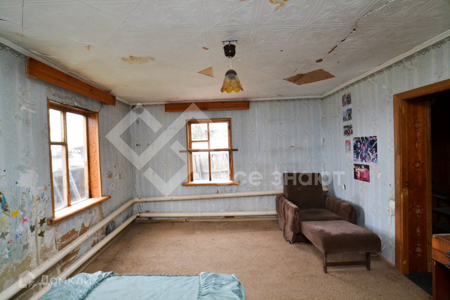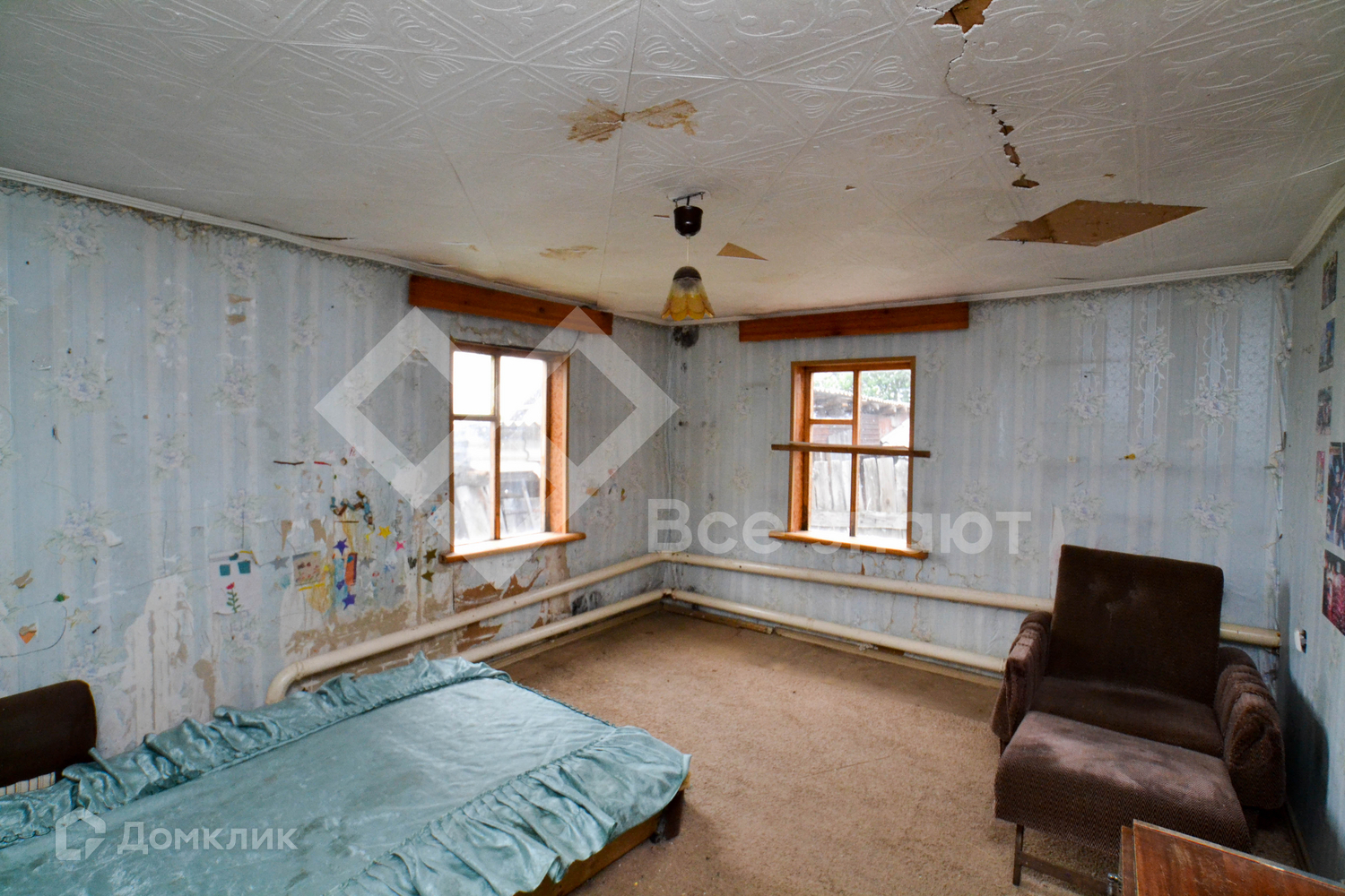 Две отдельные комнаты, кухня, кладовая комната. Паровое отопление - трубы проложены по периметру всего дома, печь обороудовна устройством для подачи грячей воды на кухню. К дому подведен газ, требуется только установка оборудования внутри дома.