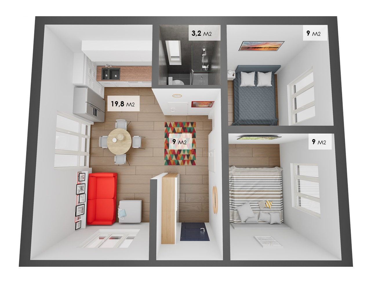 Общая площадь 80 м2