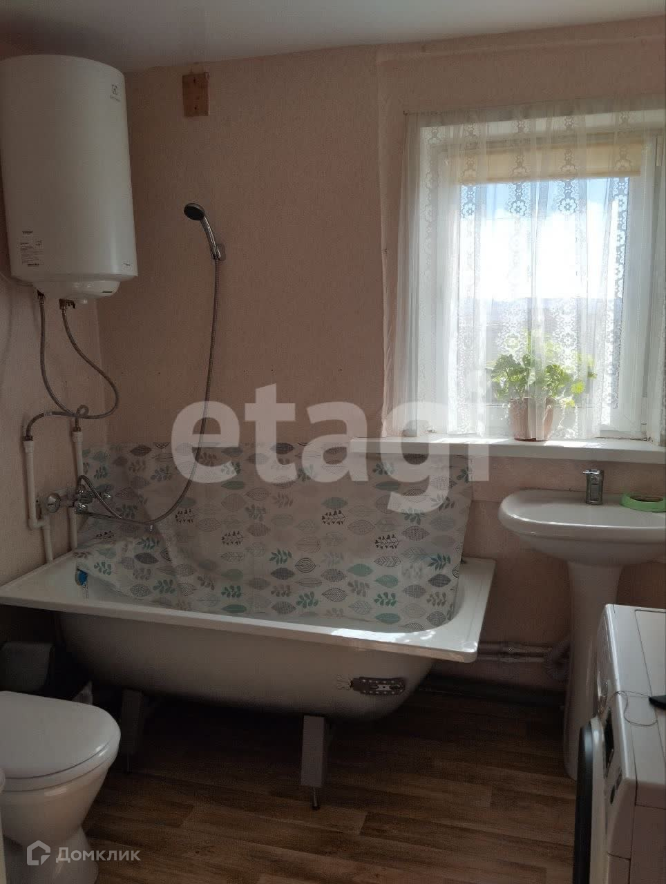Дом общей площадью 51,4 кв.м., построен из бруса. Удобной планировки, 2 больших комнаты и кухня. Стены оштукатурены, отделаны обоями. Окна пластиковые. Санузел совмещенный - туалет, ванна. Холодная и горячая вода. Отопление - печное. Площадь земельного участка 7 соток. Участок ровный, разработанный. Имеется баня, тепляк. Светлый хороший дом.