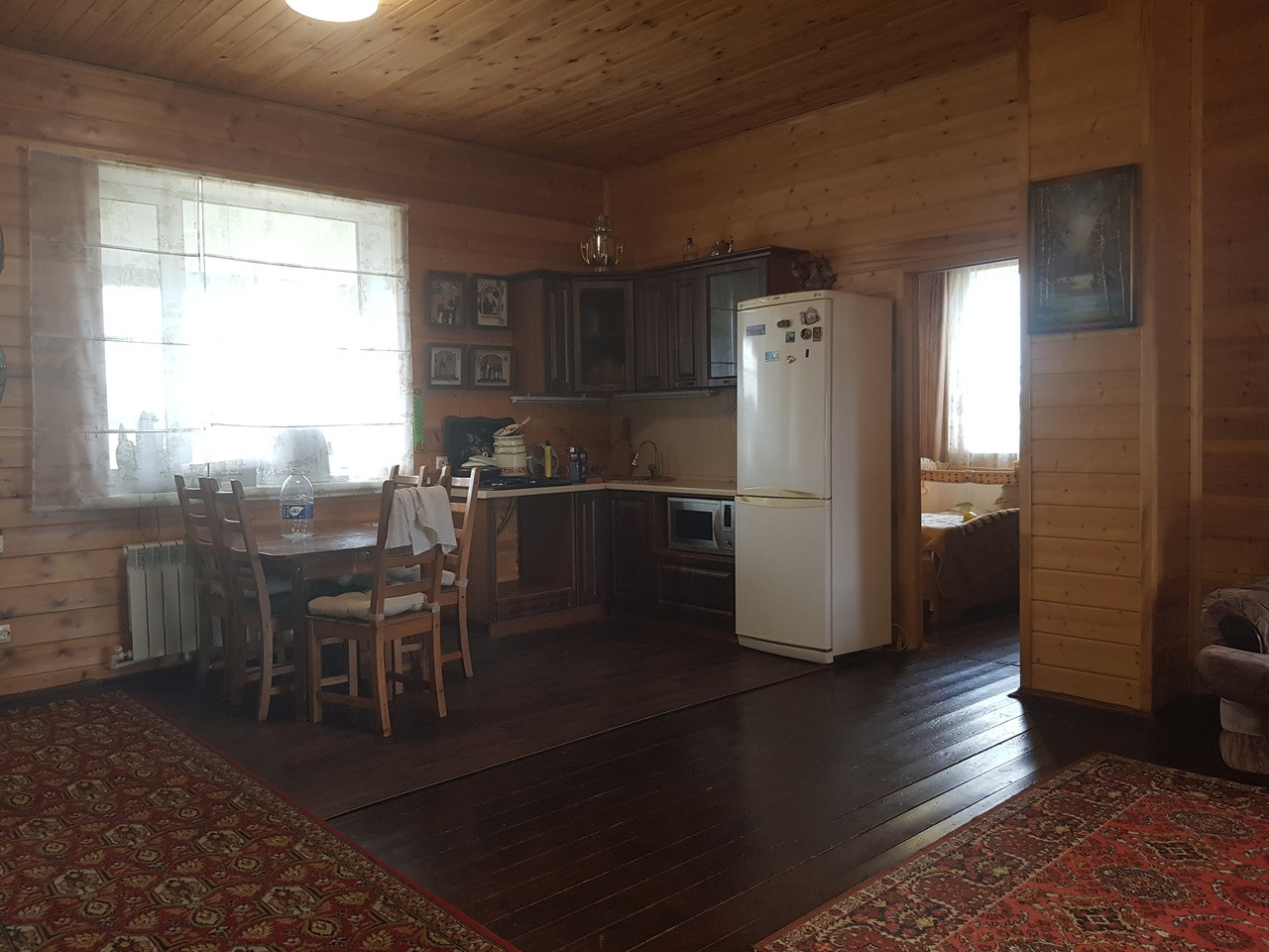 В доме: три комнаты, большая гостиная - кухня (с выходом на террасу) + 2 спальни, баня, ванная комната, сан. узел с умывальником.