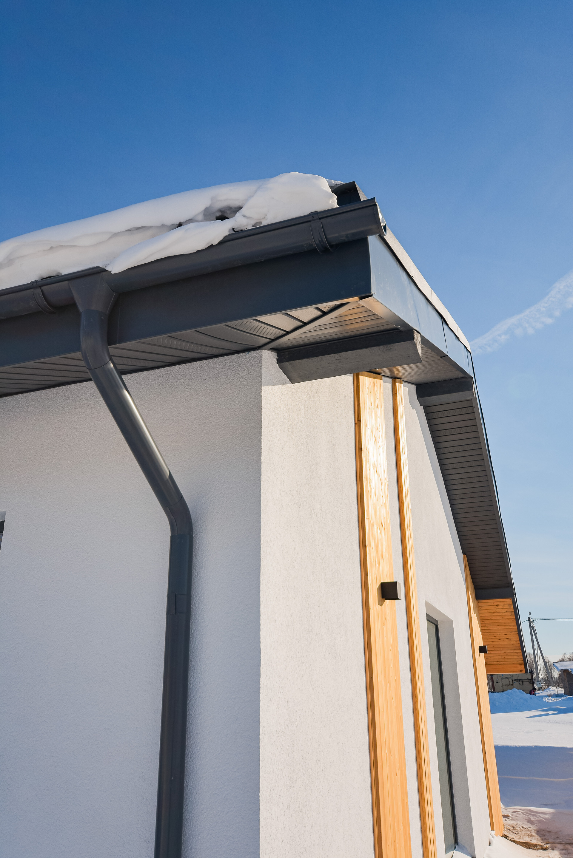 Внешняя отделка:декоративная штукатурка, покраска Cerezit, планкен лиственница.