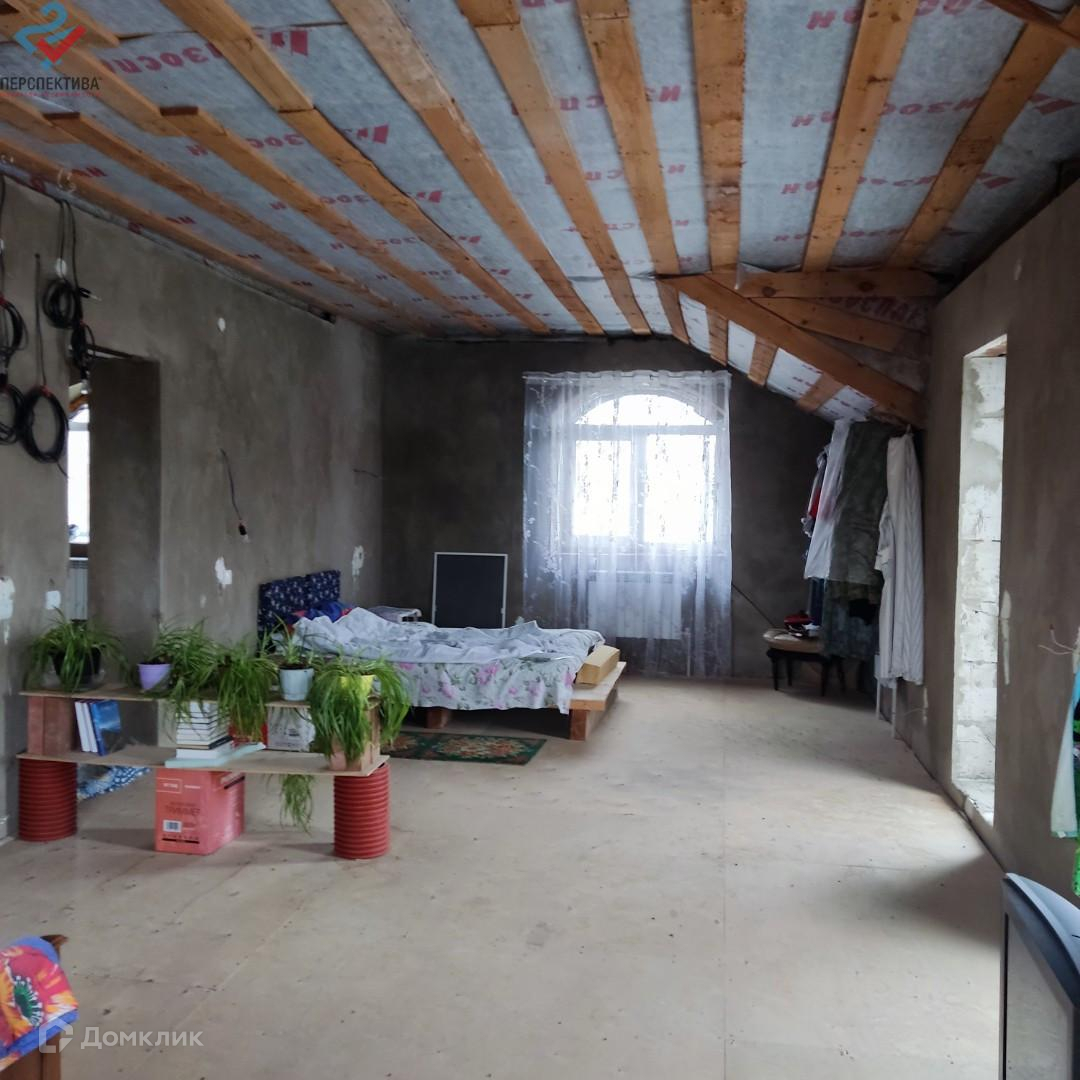 Дом состоит из 3-х этажей, 2 из них наземные, 1 этаж цокольный (подземный). Материал стен - газосиликатные блоки (ширина стен 2 блока), облицовка фасада выполнена декоративной штукатуркой, межкомнатные перегородки выполнены из кирпича. Покрытие крыши выполнено профнастилом. Окна ПВХ. Внутренняя отделка черновая. Межэтажные перекрытия утеплены. Две веранды на втором и третьем этажах с выходом из дома. Дом обогревается, установлен и функционирует современный газовый котел, установлены радиаторные батареи, сделана разводка электрических сетей по всему дому.
