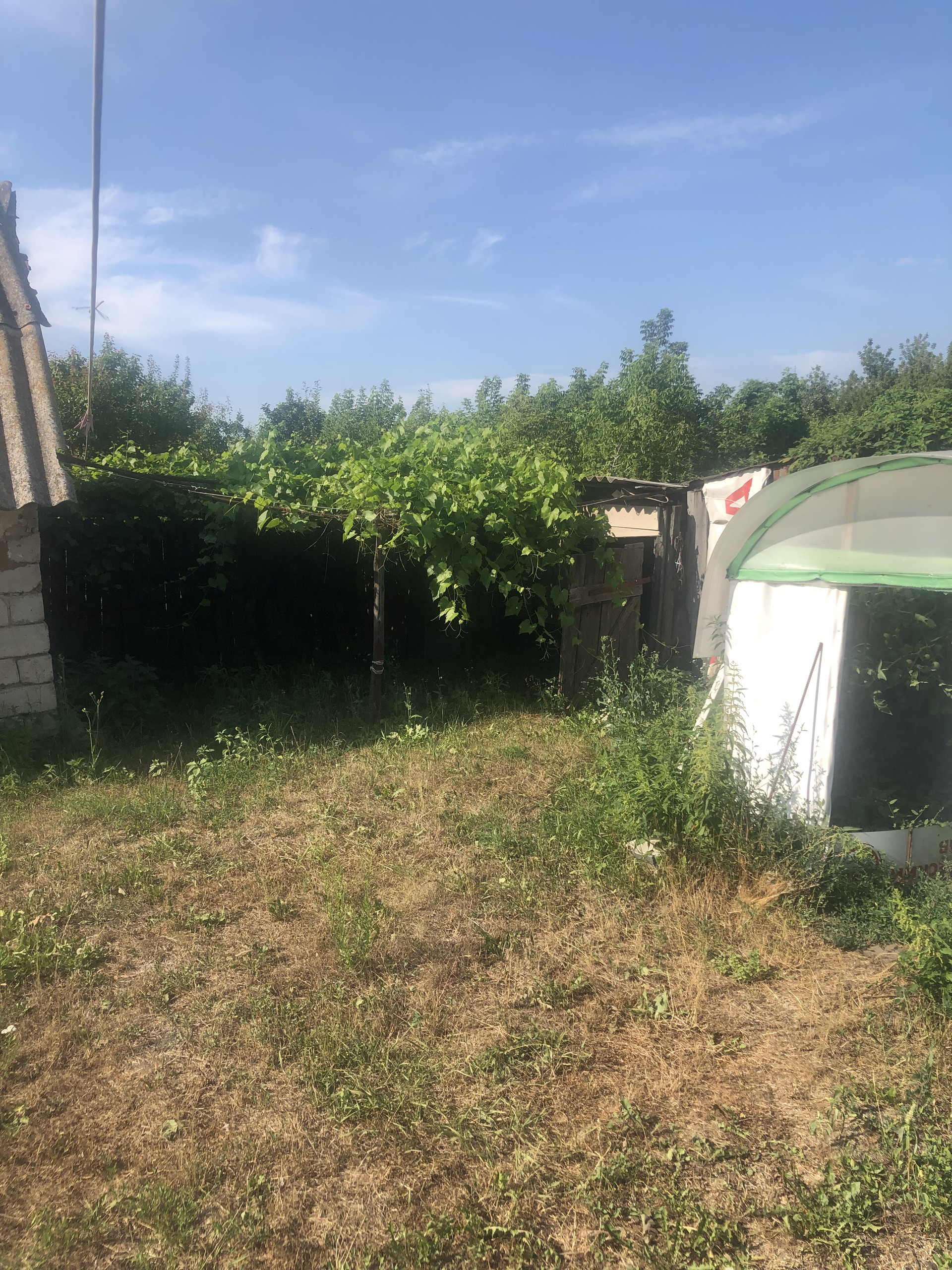 Дом стоит возле трассы индивидуальный заезд двор большой есть постройки почти готовый гараж во дворе теплица два вида винограда в есть малинник абрикосы яблони груши смородина ежевика в доме ремонт есть все для проживания