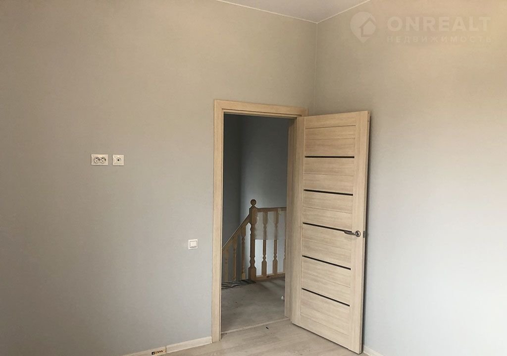 На полу уложен ламинат, плитка. На стенах - обои под покраску. Натяжные потолки с точечными светильниками.Дом полностью отделан и готов к проживанию. 1 этаж: прихожая, кухня-гостиная, спальня, котельная, санузел.2 этаж: 3 спальни, санузел.Коммуникации: Магистральный газ, электричество 380 В (15кВт), водоснабжение - скважина, канализация - септик.