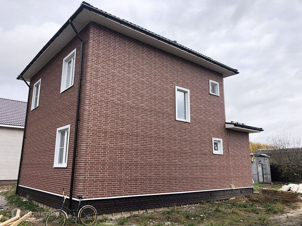 Построен из газосиликатных блоков на ленточном фундаменте, снаружи обшит сайдингом, имитирующим кирпичную кладку.Установлены пластиковые стеклопакеты, крыша - металлочерепица.