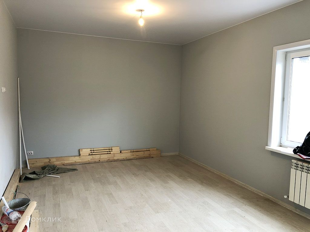 На полу уложен ламинат, плитка. На стенах - обои под покраску. Натяжные потолки с точечными светильниками.Дом полностью отделан и готов к проживанию. 1 этаж: прихожая, кухня-гостиная, спальня, котельная, санузел.2 этаж: 3 спальни, санузел.Коммуникации: Магистральный газ, электричество 380 В (15кВт), водоснабжение - скважина, канализация - септик.