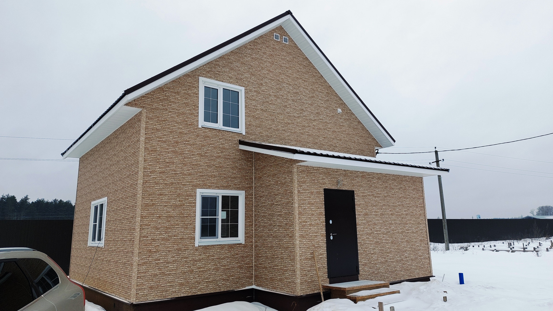 Общая площадь 112 кв. м. Ленточный фундамент (ГОСТовский бетон). Дом выполнен по каркасной (канадской/финской/немецкой) технологии, очень теплый (в морозный месяц до 8.5 т.р. в мес, летом до 1 т.р., что подтверждается квитанцией об уплате за электроэнергию).