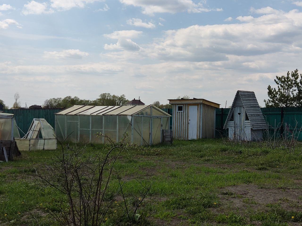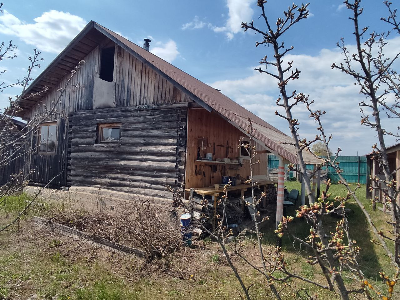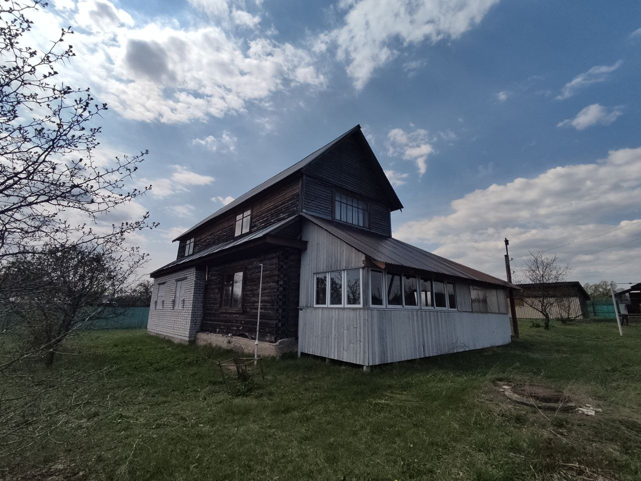 Дом в два этажа: веранда, прихожая, кухня, жилые помещения. Часть дома на этапе внутренней отделки. Баня, мастерские, парники.