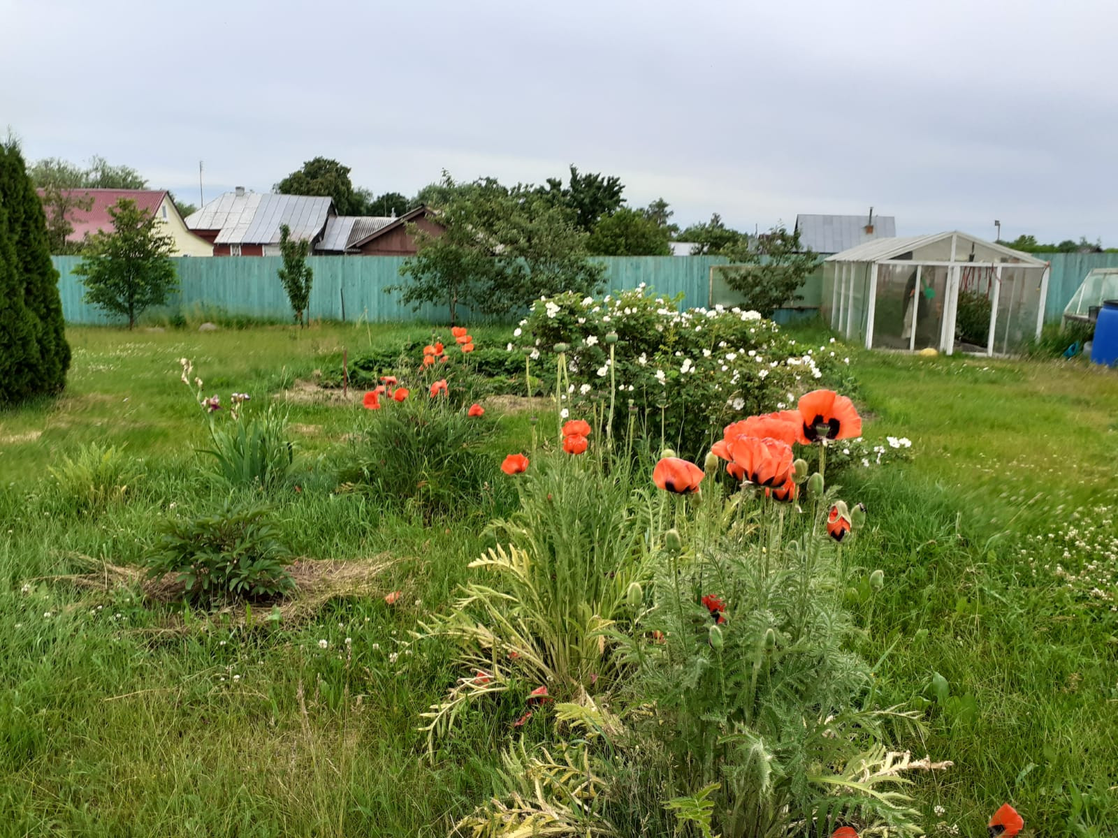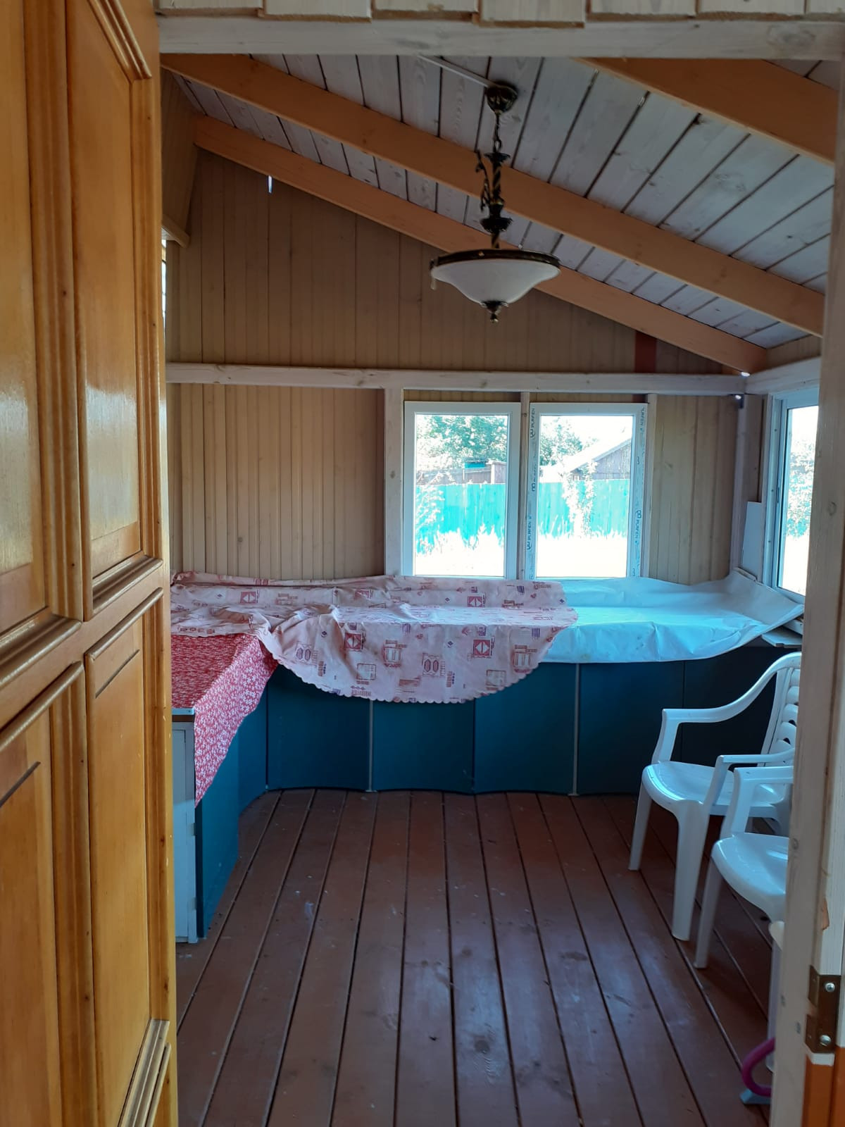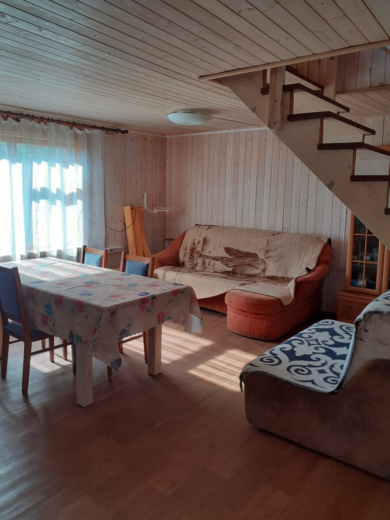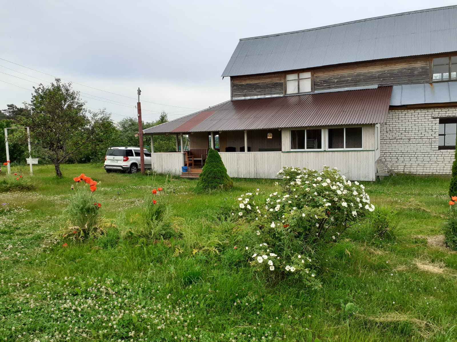 Дом в два этажа: веранда, прихожая, кухня, жилые помещения. Часть дома на этапе внутренней отделки. Баня, мастерские, парники.
