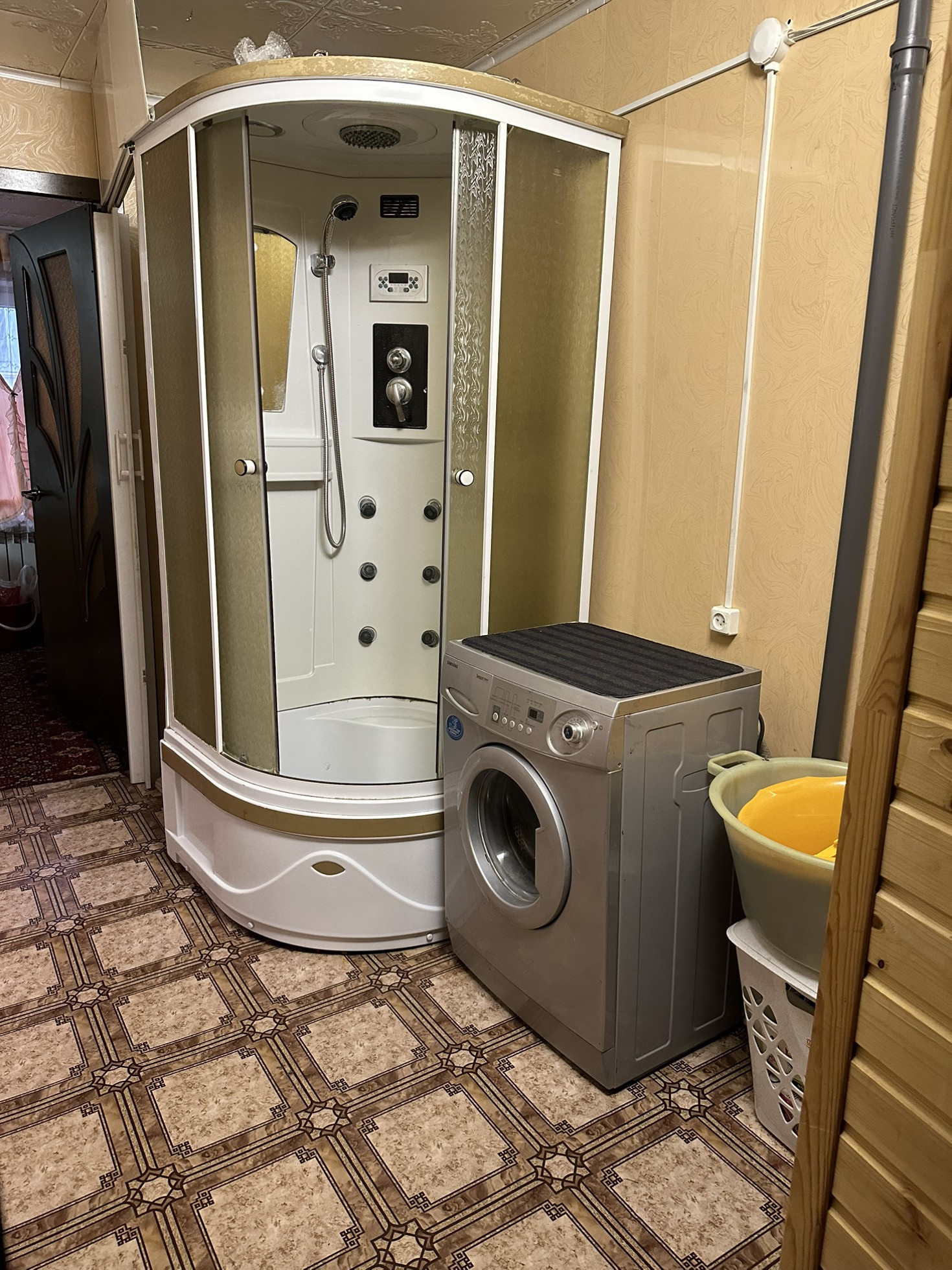 -Туалет и душевая кабина в доме, стиральная автоматическая машина.