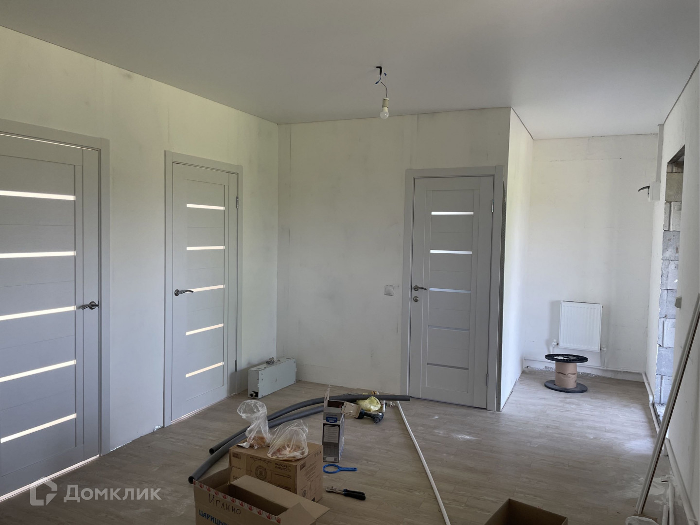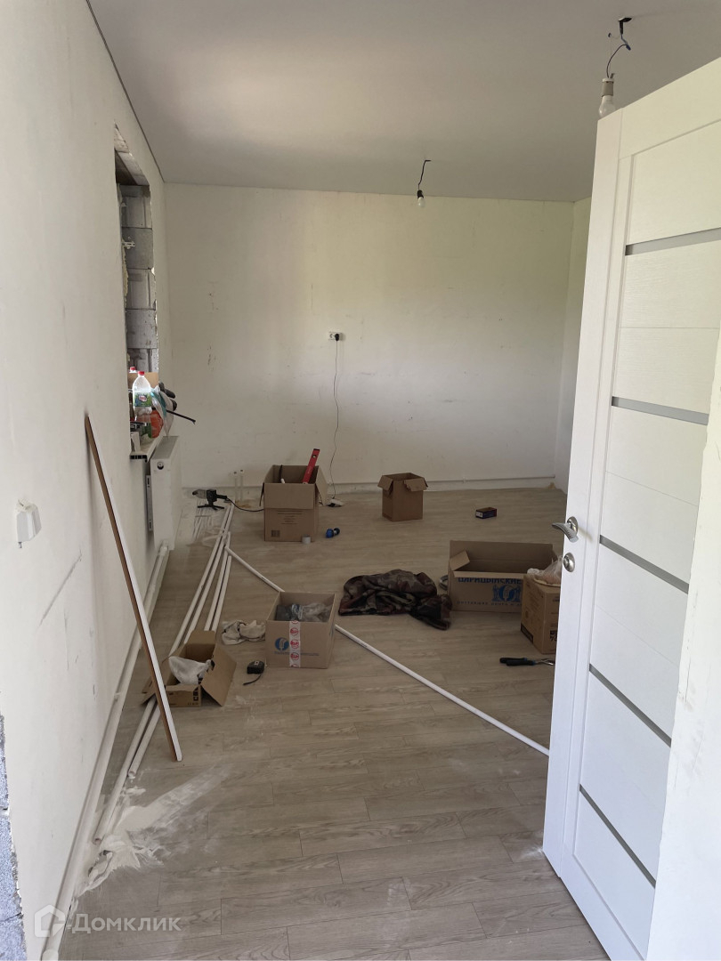 Внутренняя отделка предчистовая: стены отштукатурены готовы под поклейку обоев, установлены пластиковые окна, сантехника ( раковина, унитаз). Потолки натяжные, пол – шпунтовая доска + ОСП + линолеум. Двери.