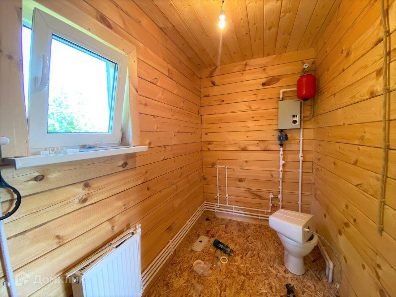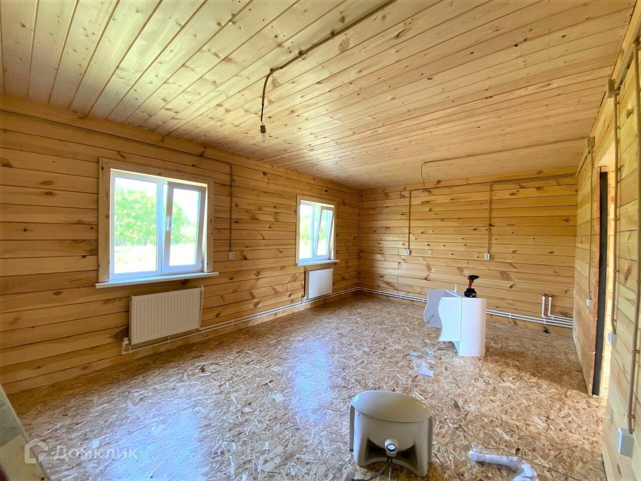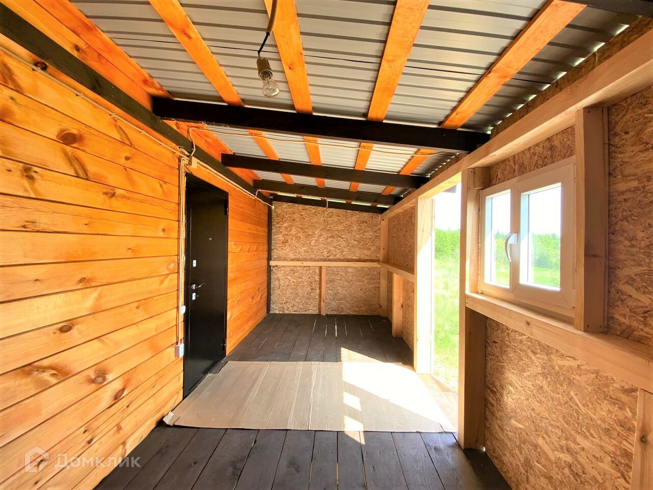 Отделка: стены- строганый брус, полы – ОСБ, потолки имитация бруса.