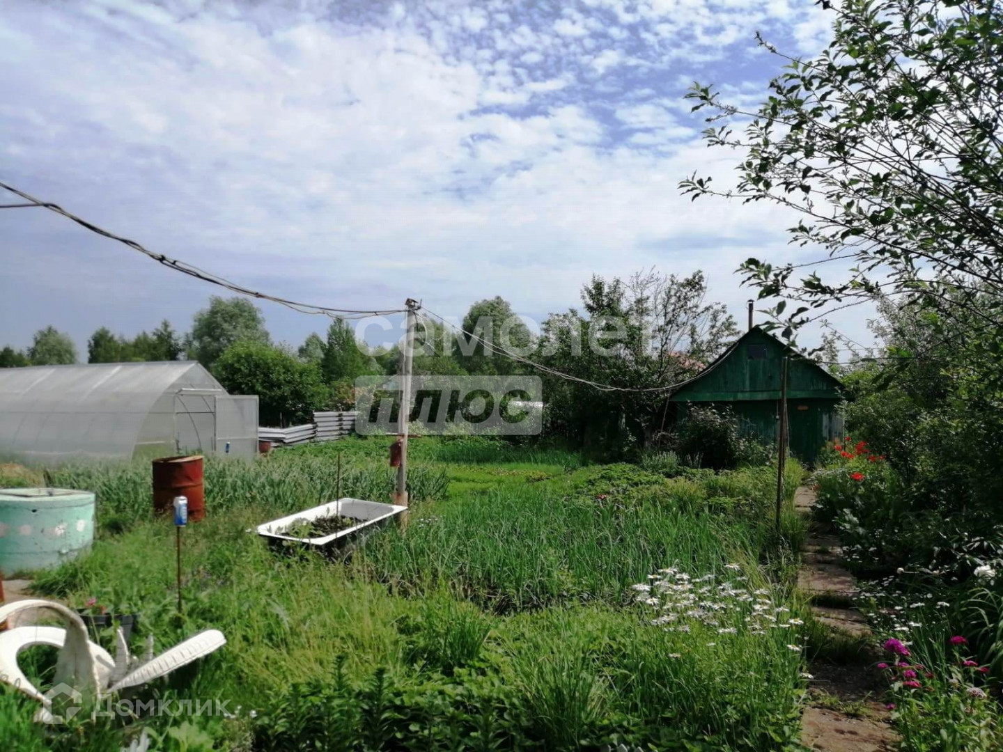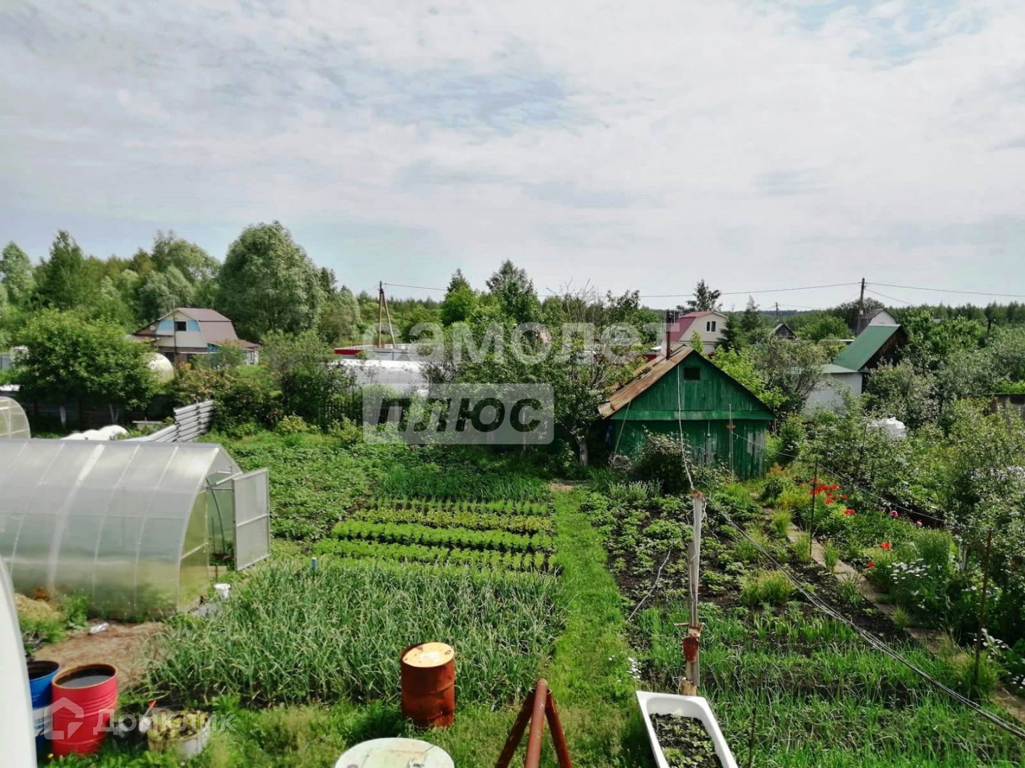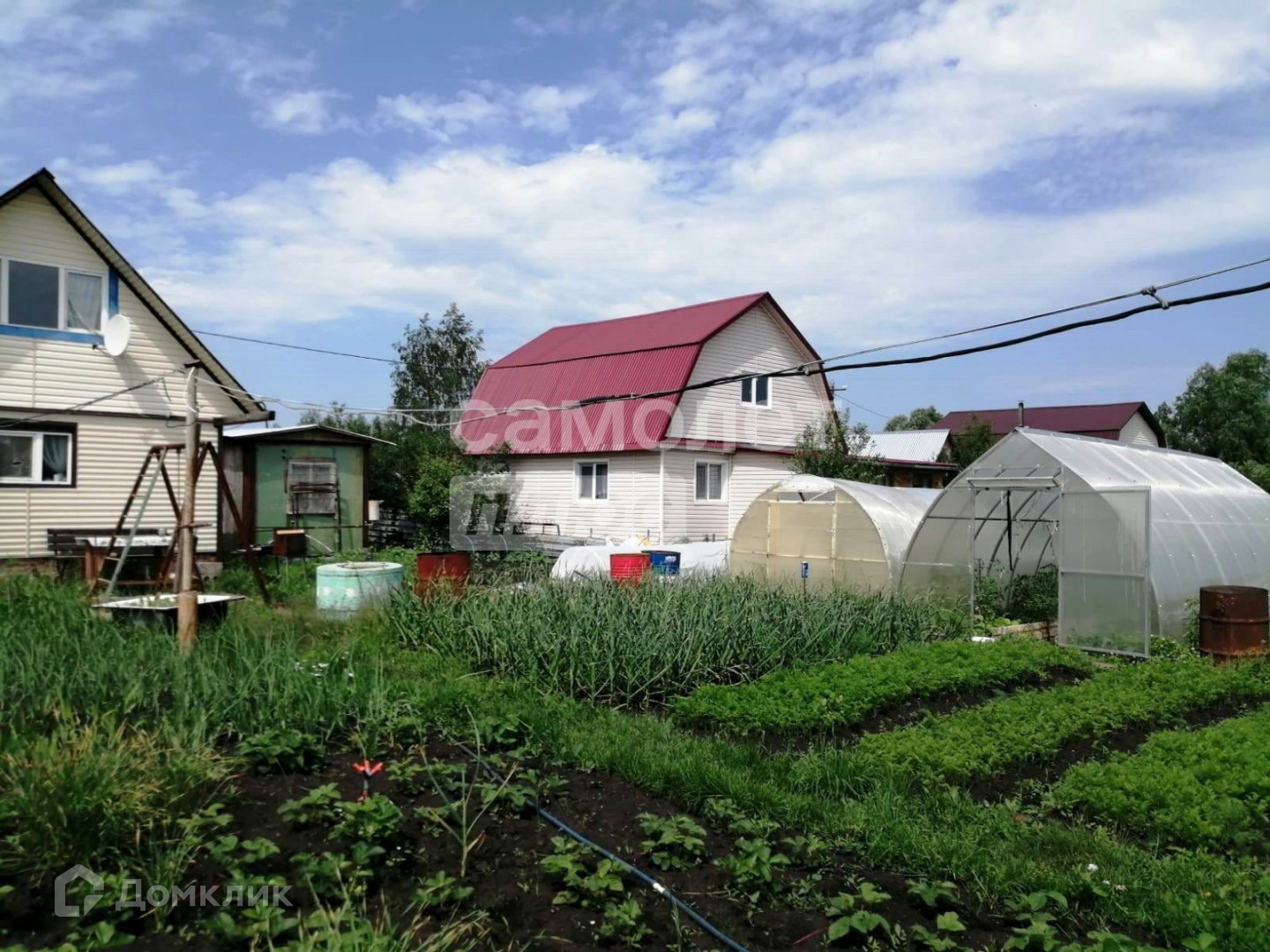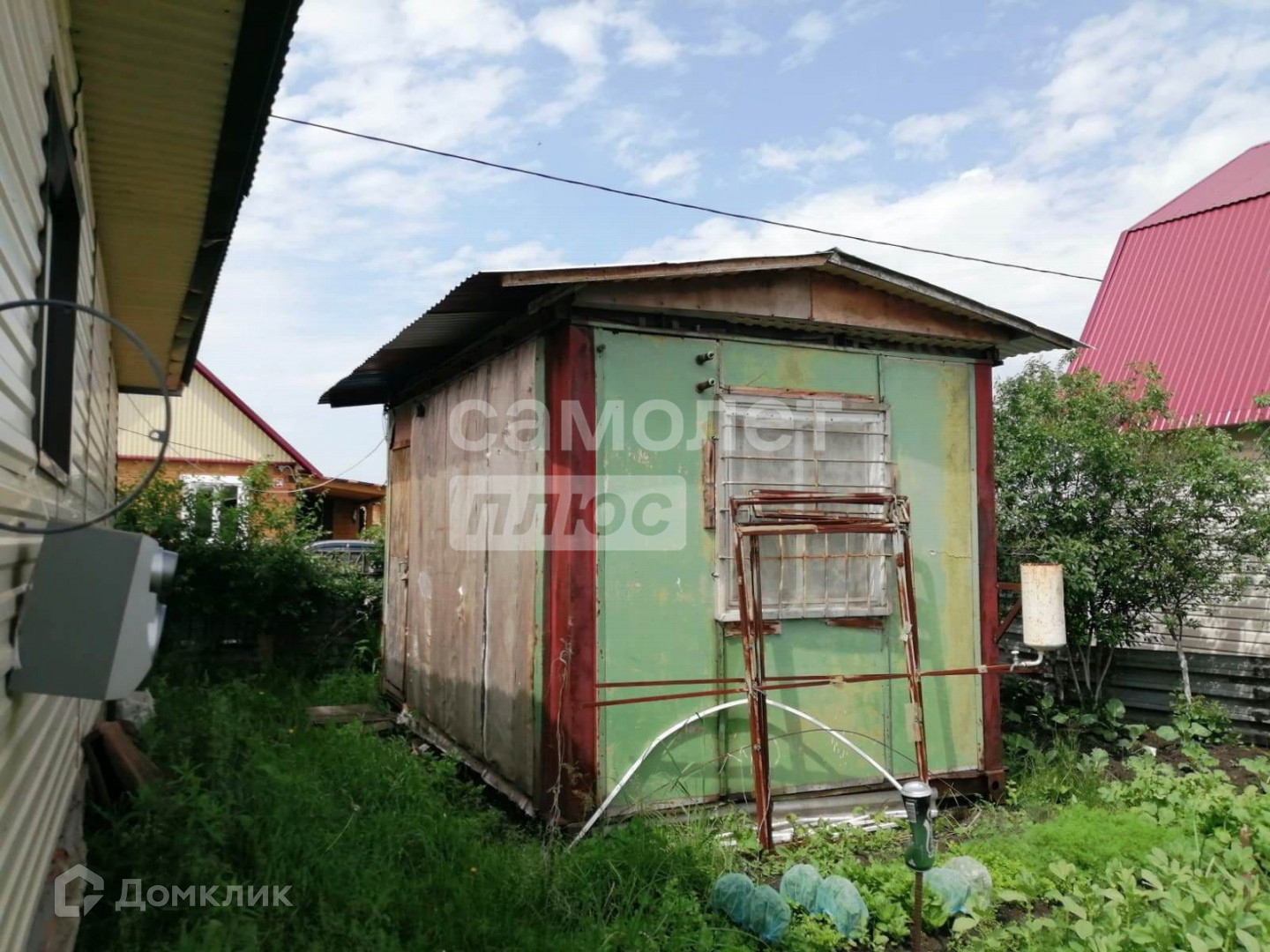 На участке плодовые насаждения . Дом обшит металло-сайдингом с утеплителем.