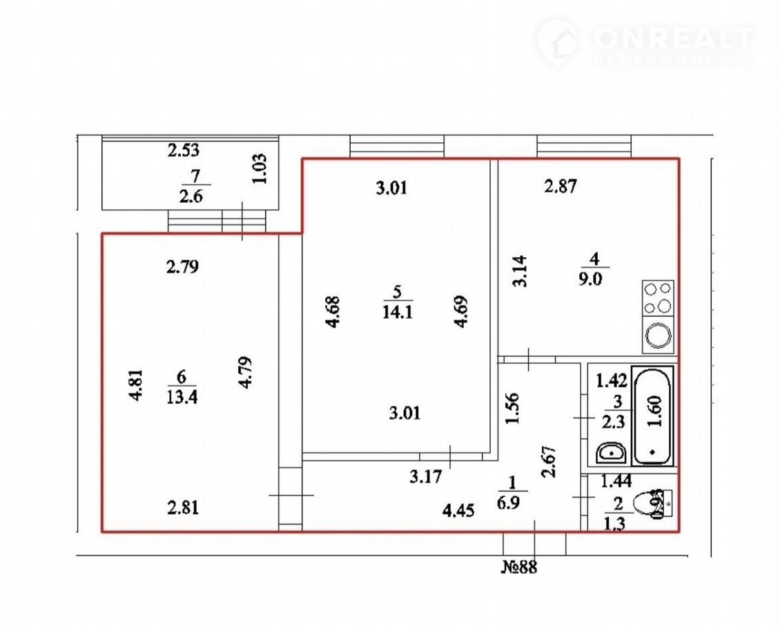 Балкон, лоджия 1 лоджия