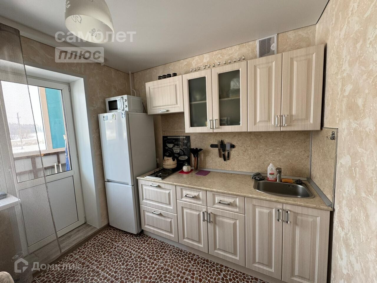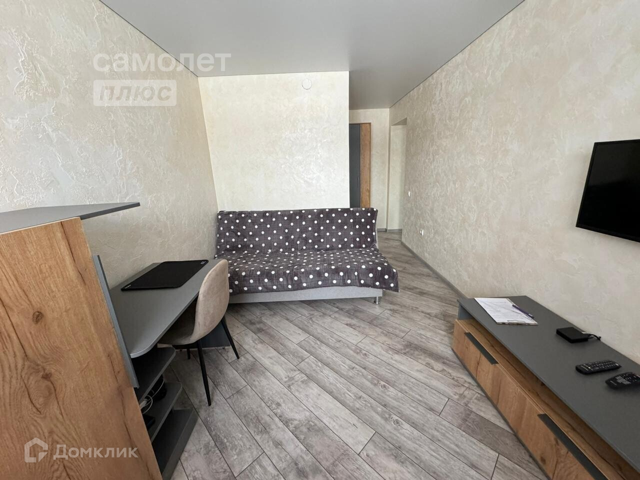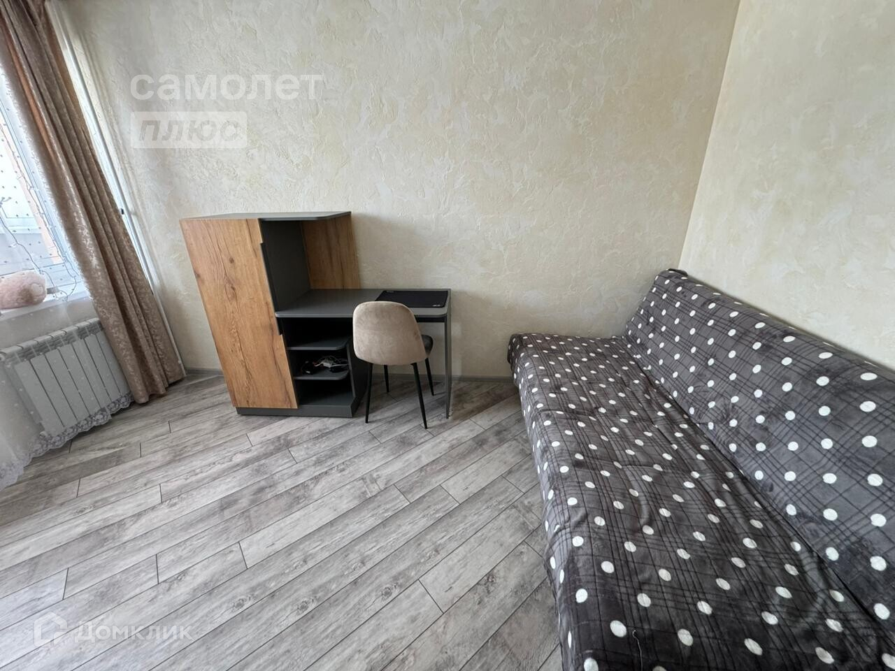 - на полу в комнате и коридоре ламинат, на кухне плитка и теплый пол, в санузеле тоже плитка.