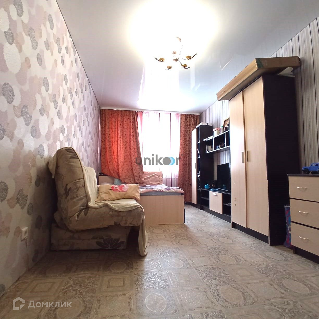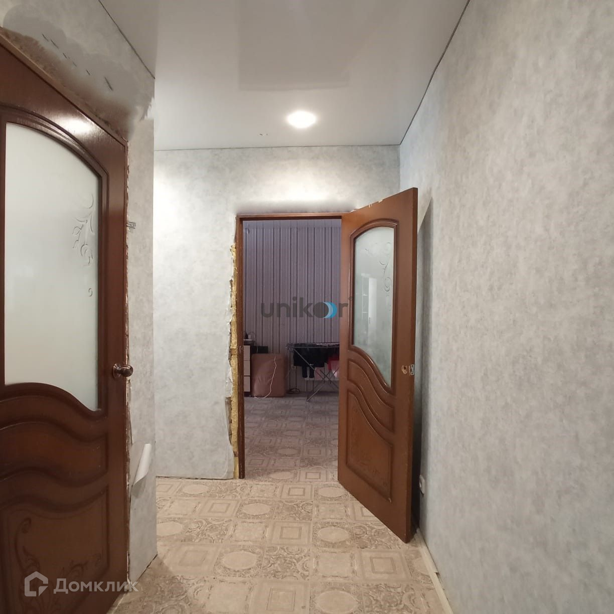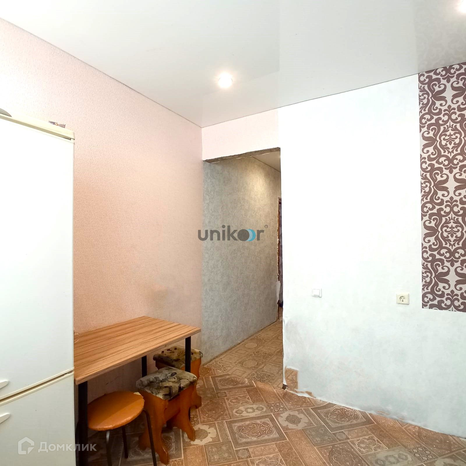 Отделка: натяжной потолок по всей квартире, напольное покрытие: коридор, кухня, спальная - линолеум, в ванной комнате - плитка.