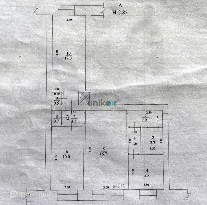 Высота потолков 2.5 м