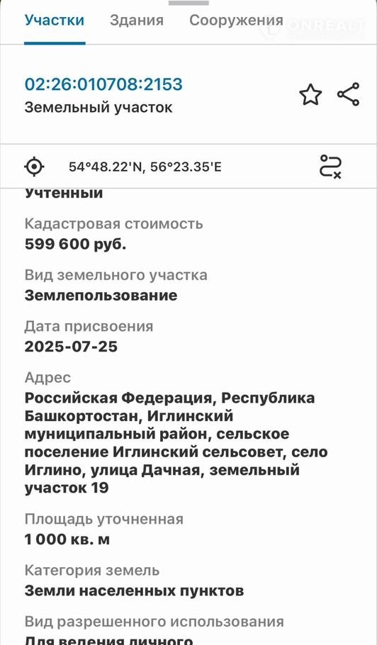 Участок под ИЖС, 10 сот. на продажу в селе Иглино, Дачная улица