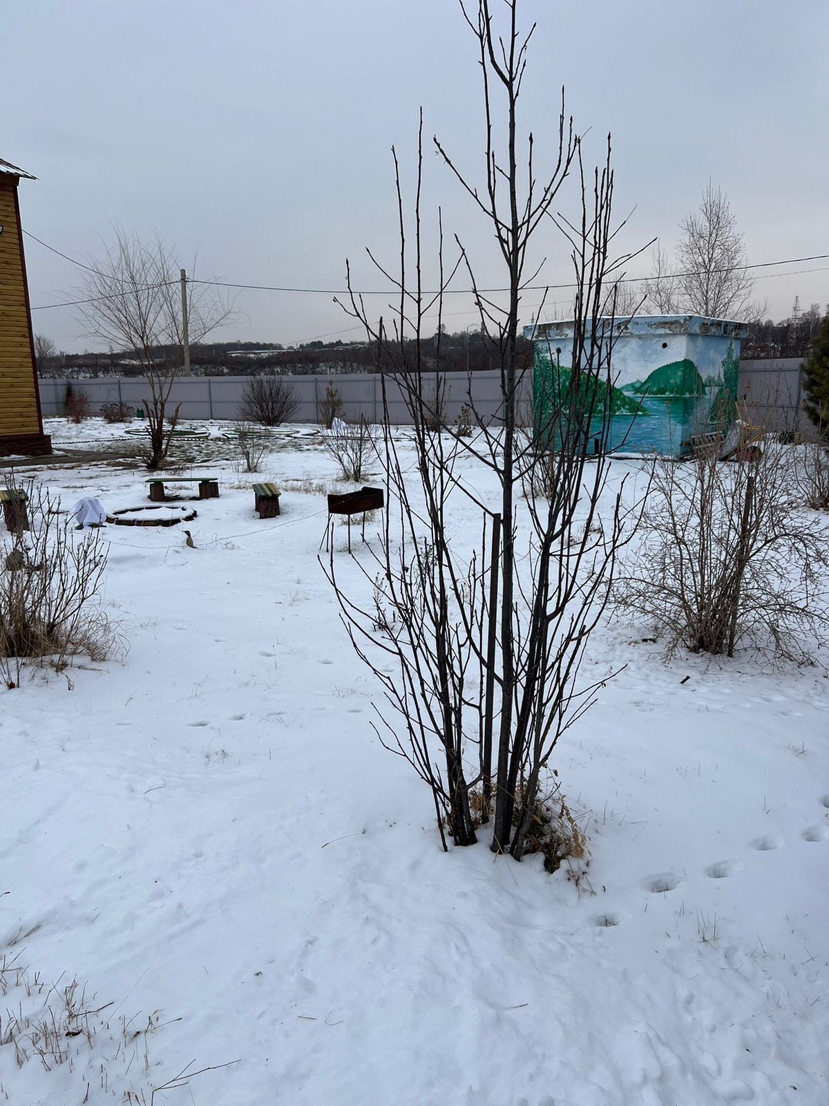 Участок: малина, смородина, жимолость, крыжовник, сирень.