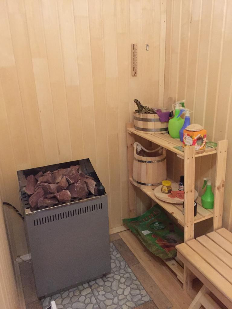 В большой спальне - спальный гарнитур с двуспальной кроватью, в других спальнях - по две кровати и шкафы для хранения белья и вещей. В сауне есть каменка. Все это остаётся новым хозяевам!