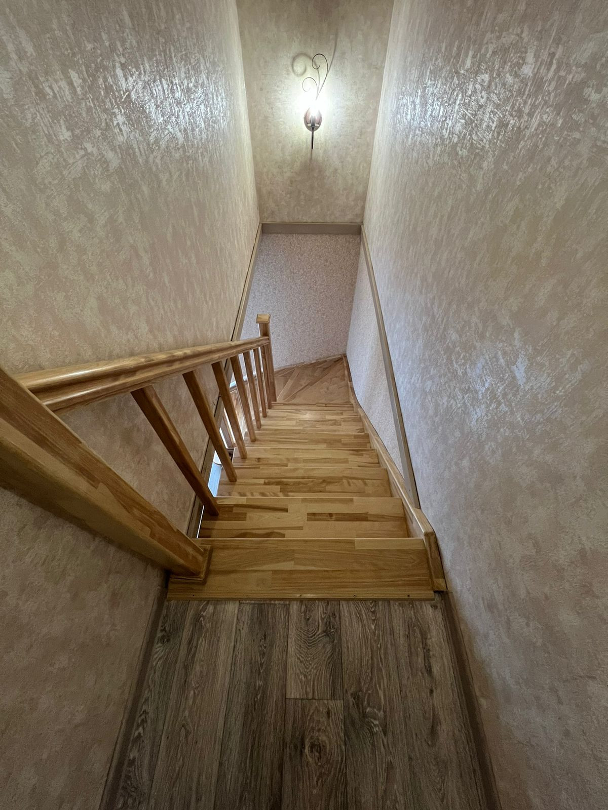 - Пол первого этажа полностью залит пенополистиролбетоном, межэтажное перекрытие: брус 200х200 мм, доска 40 мм, ДСП.