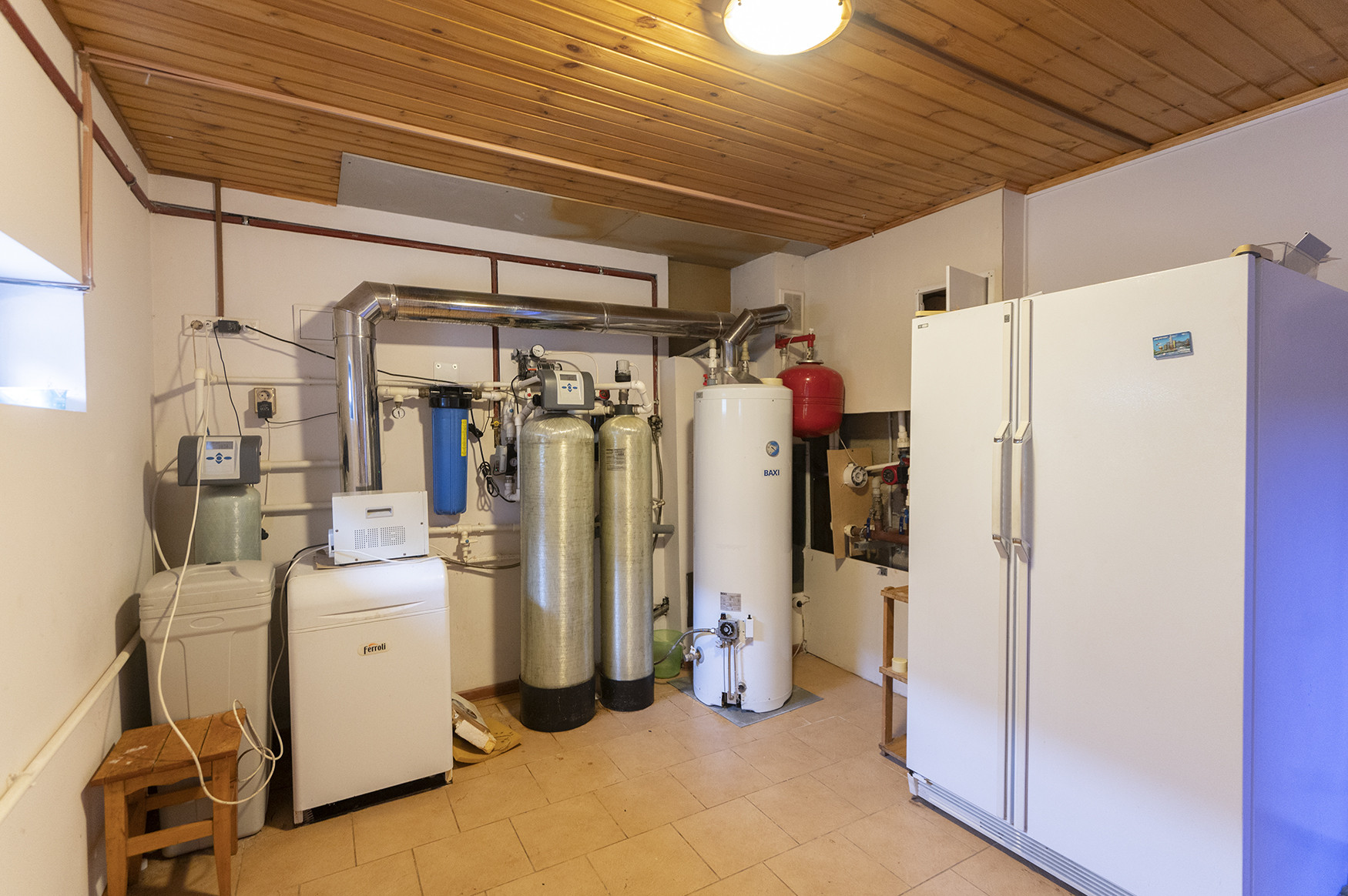 Все жизненно необходимые коммуникации заведены и прекрасно функционируют: отопление – газовый котел (газ - магистраль), канализация – септик, электричество – 380 Вт (10 кВт), водопровод – скважина, установлена станция водоподготовки воды.