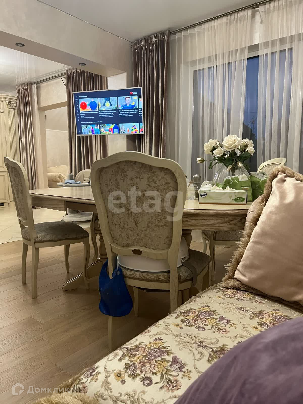 На первом этаже находятся: закрытая веранда 8 кв.м, коридор 7 кв. м, кухня 14 кв. м, столовая 22,5 кв.м, гостиная 21 кв. м, санузел 4,6 кв. м, бойлерная. На лестничном пролёте есть дополнительная комната для размещения гостей, а также хранения. На втором этаже спальня 21 кв.м, детская 10 кв. м (гостевая комната), санузел 3,75 кв. м. Установлены дорогие панорамные окна, полы паркет-тёплые. Дорогая итальянская мебель, все из массива, кухонный гарнитур со столешницей из американского натурального кварца. Техника на кухне Smеg. Вся мебель и техника остаётся новому собственнику. Кондиционеры dаikin на первом и втором этажах. В доме установлена охранная система. Проведён интернет ( оптическое волокно). В доме находится закрытый отапливаемый гараж. В случае отключения света, в доме есть генератор.