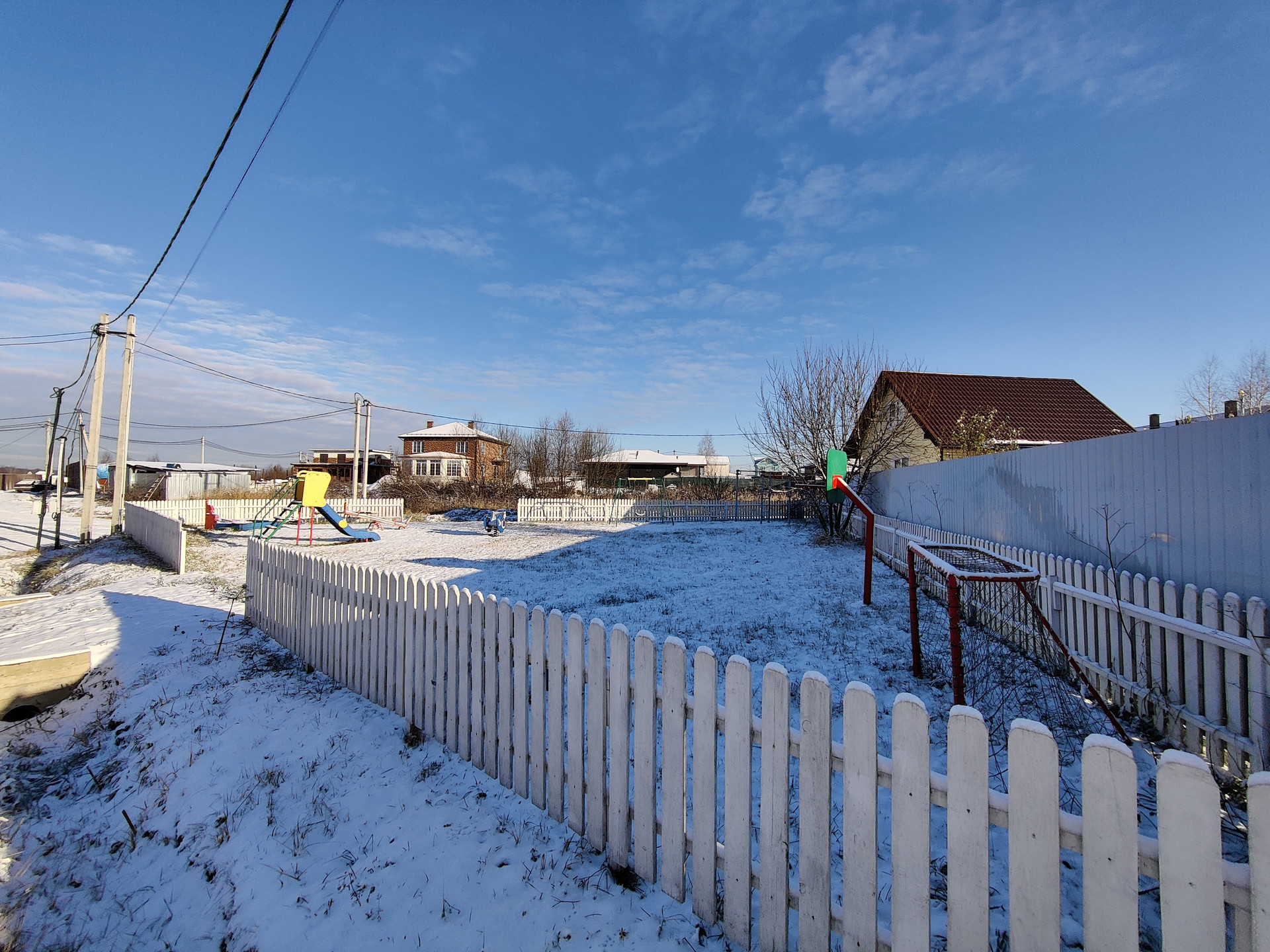 Электричество 15кВт, централизованный водопровод, газ по границе поселка, дороги из асфальтовой крошки, детская и спортивная площадки на территории.