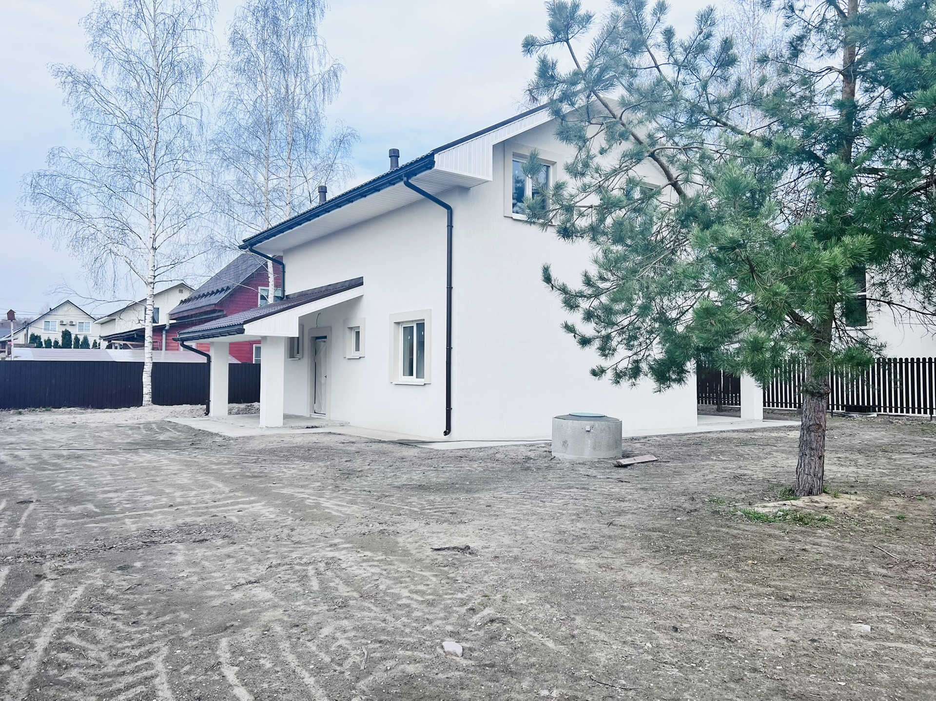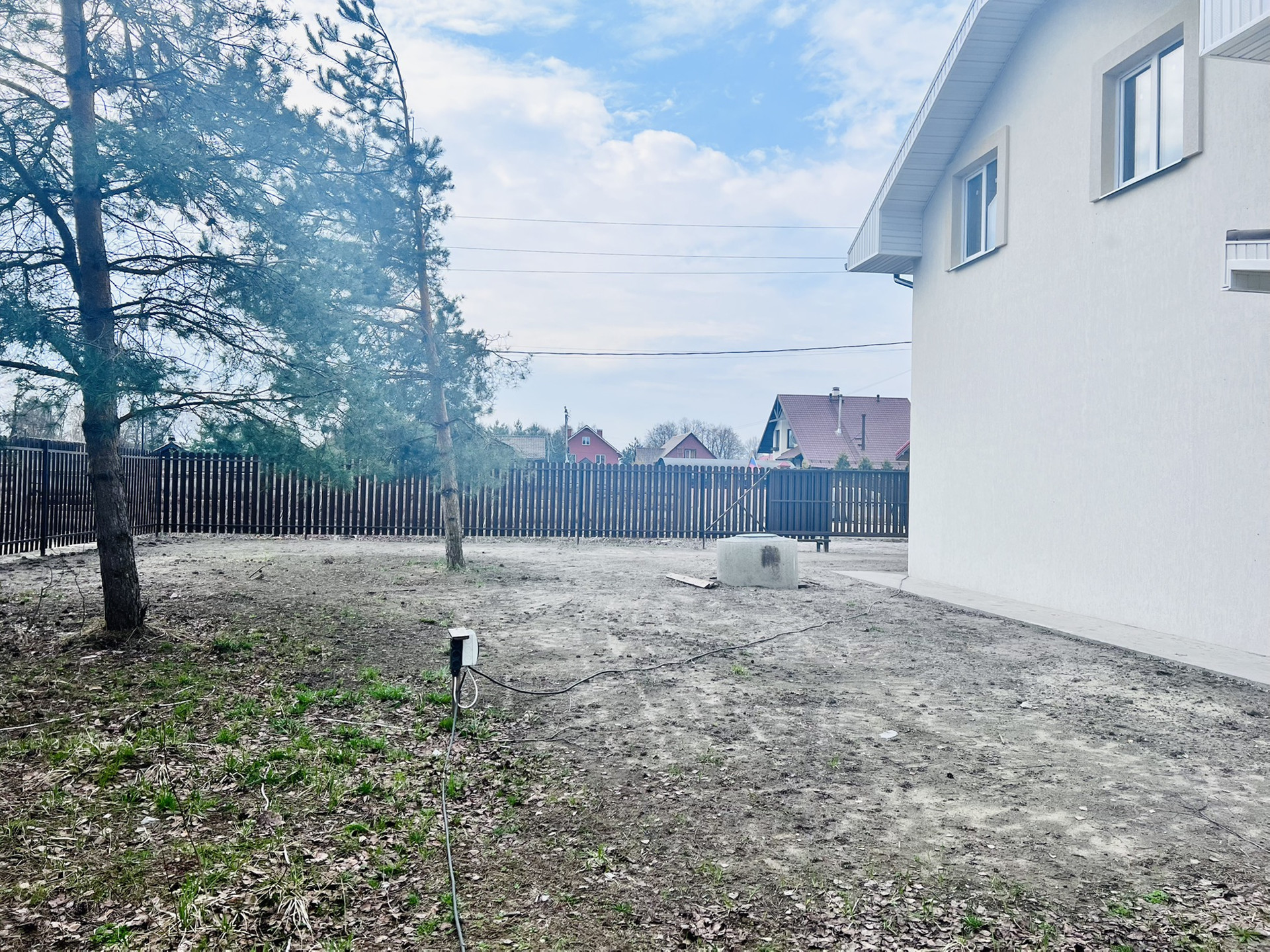 Участок ИЖС - ровный, сухой, правильной формы. На участке сосны, березы. Огорожен, ворота откатные, калитка.