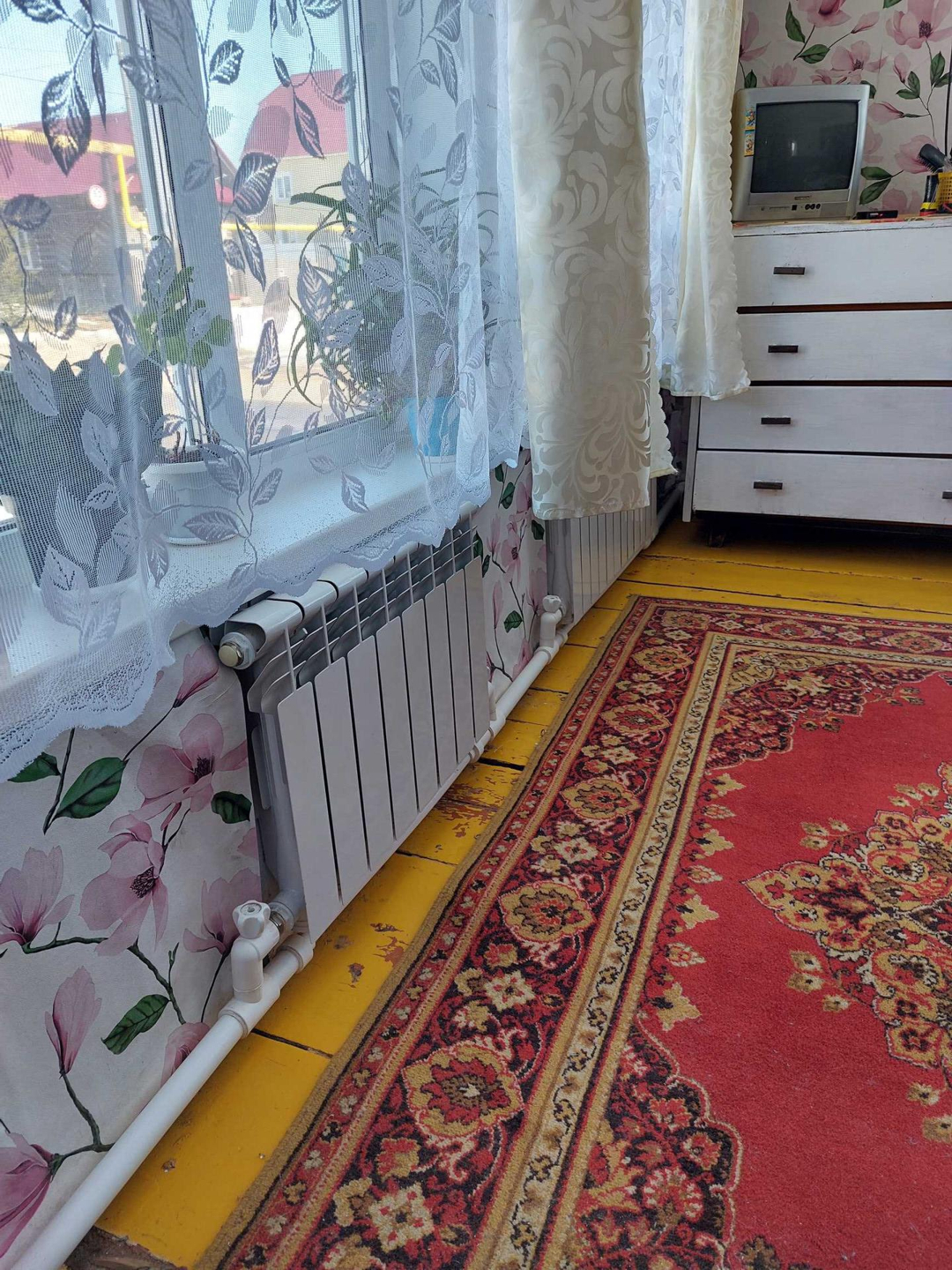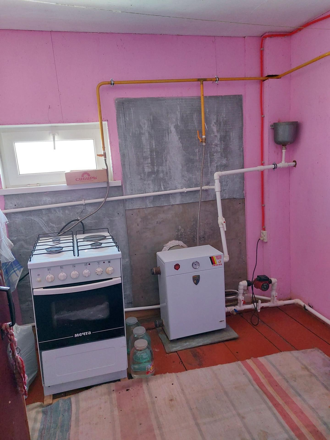 Отопление газовое, вода заведена в дом, туалет на улице, вода сливается в яму, пластиковые окна, новая крыша, забор из профнастила по периметру участка вокруг дома.